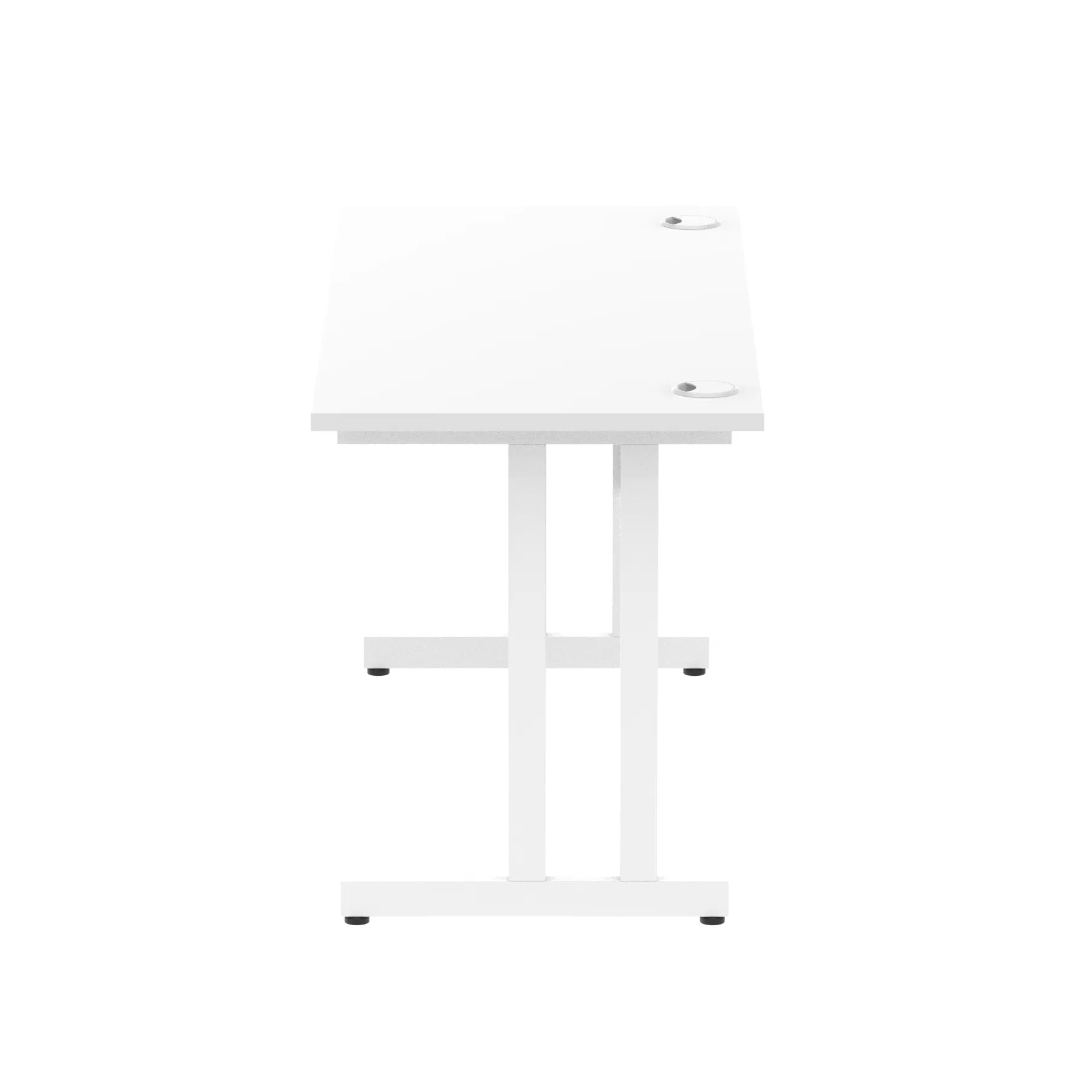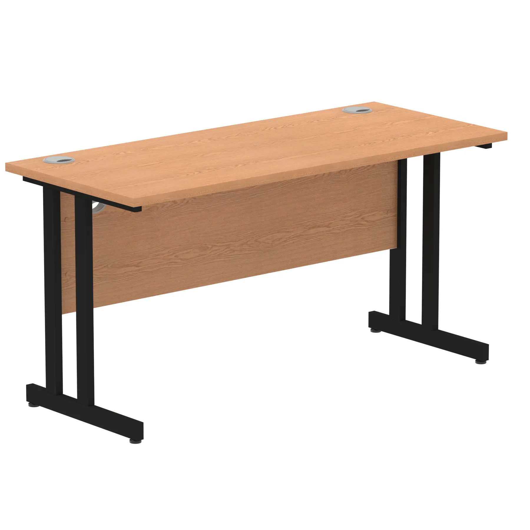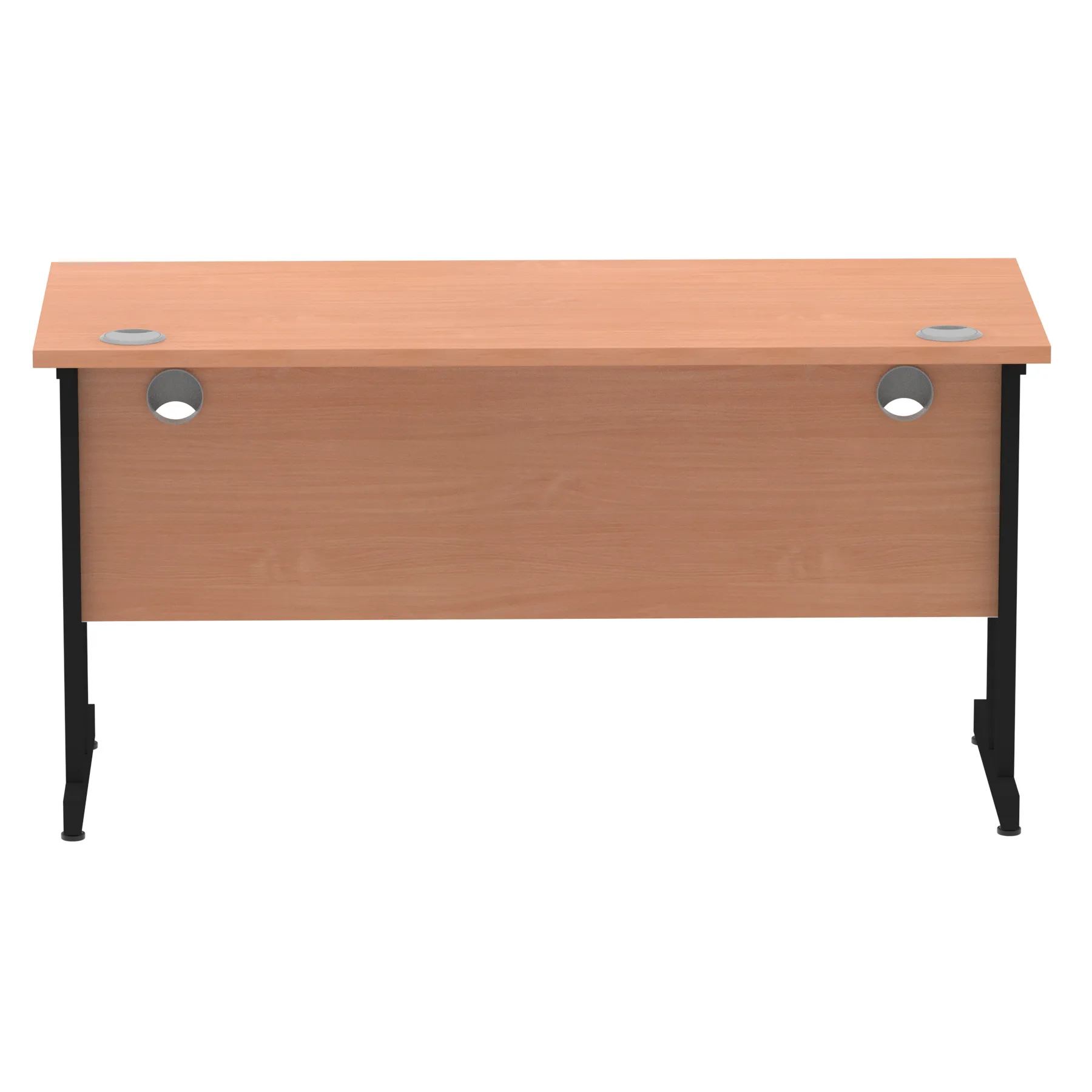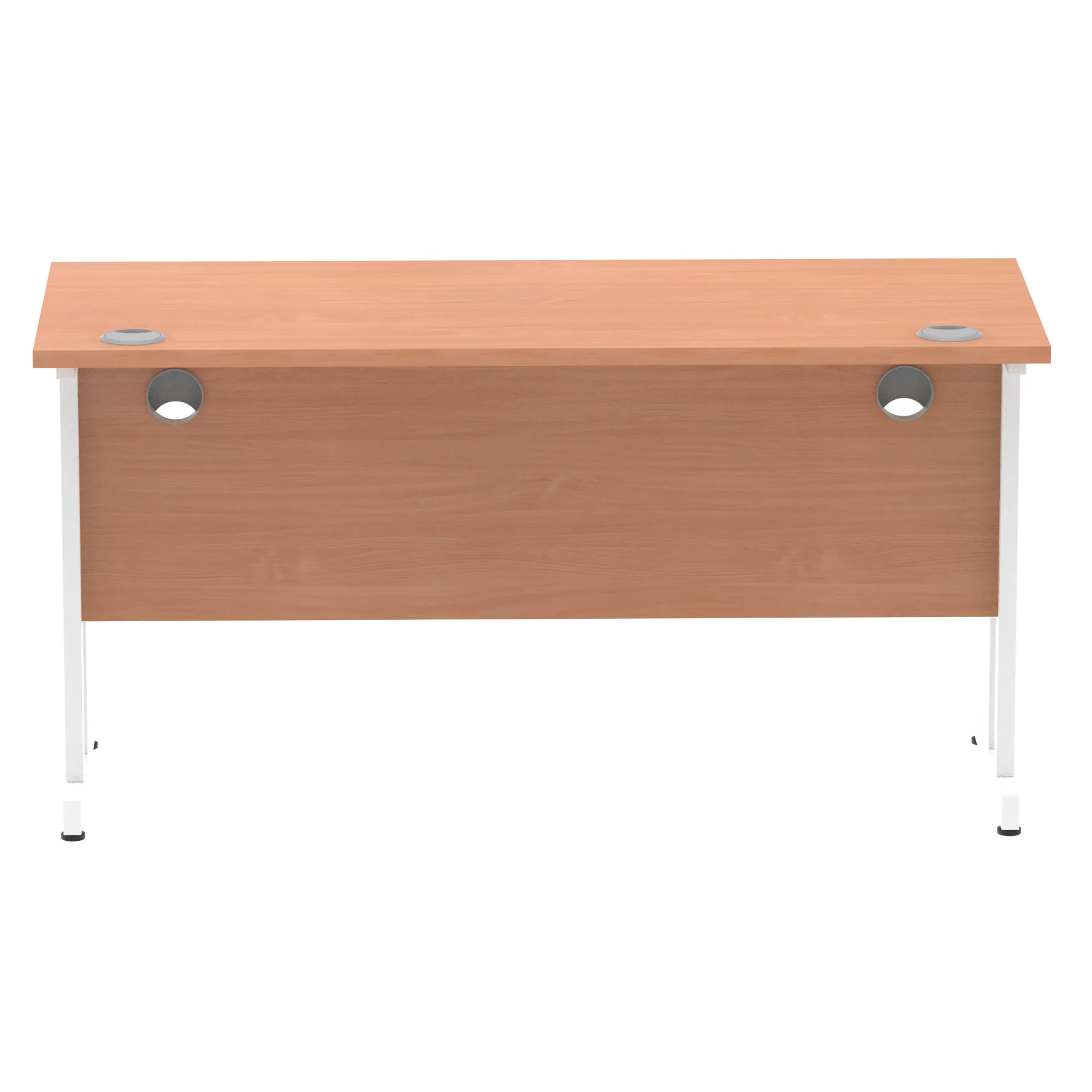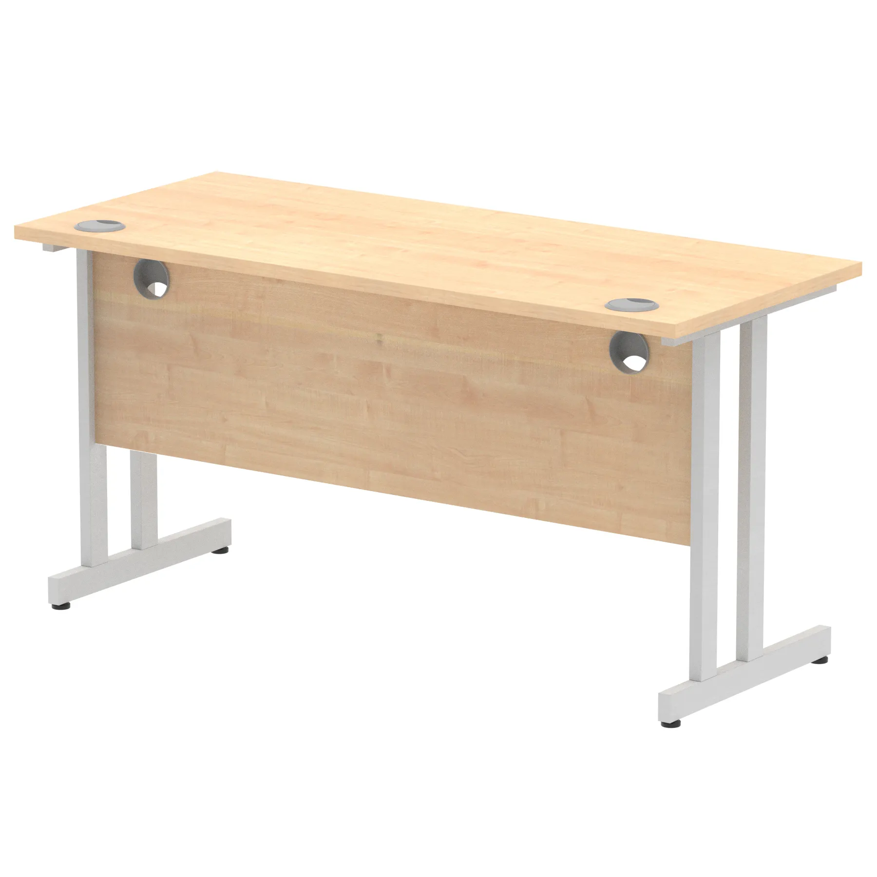 Impulse contract desk | 25mm tops | Heat resistant melamine finish | 18mm modesty panels | 2mm protective abs edging | Silver coated double strut legs | 2 cable ports | Height adjustable feet | Steel to steel fixings | 2 modesty panels slots |Deep set modesty panel (5″) allows for compatibility of most screen clamp fittings | Weight Capacity 135Kg