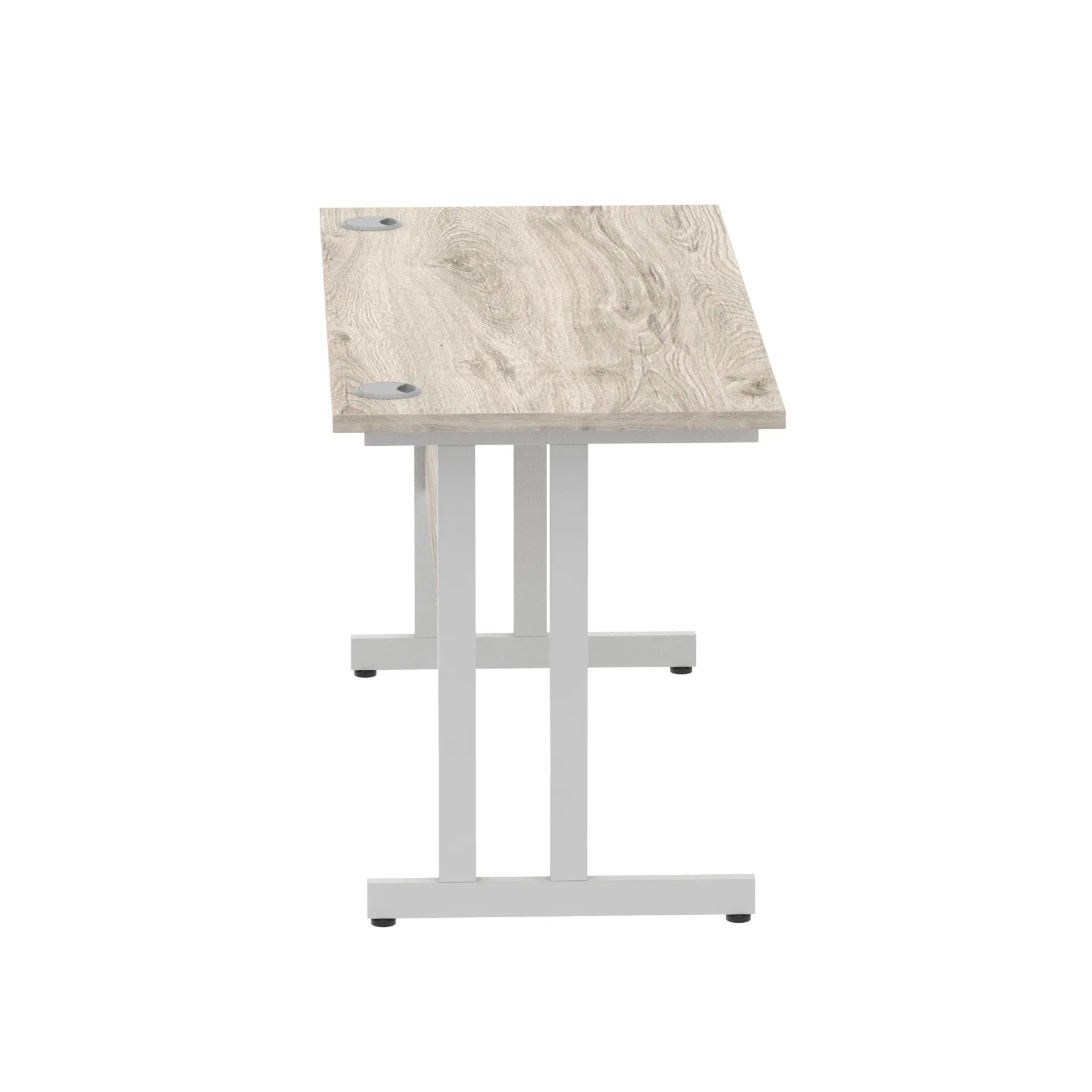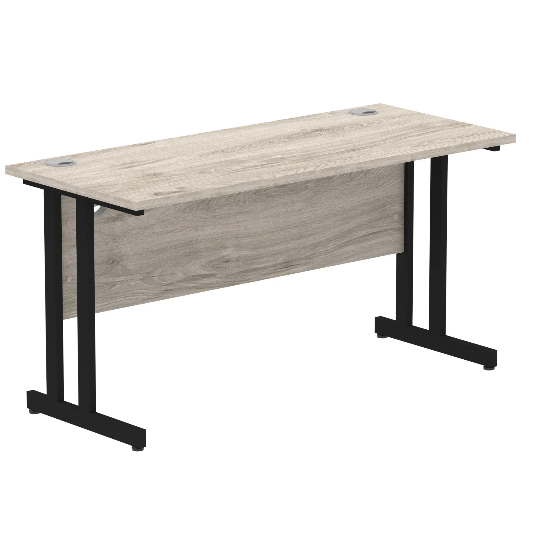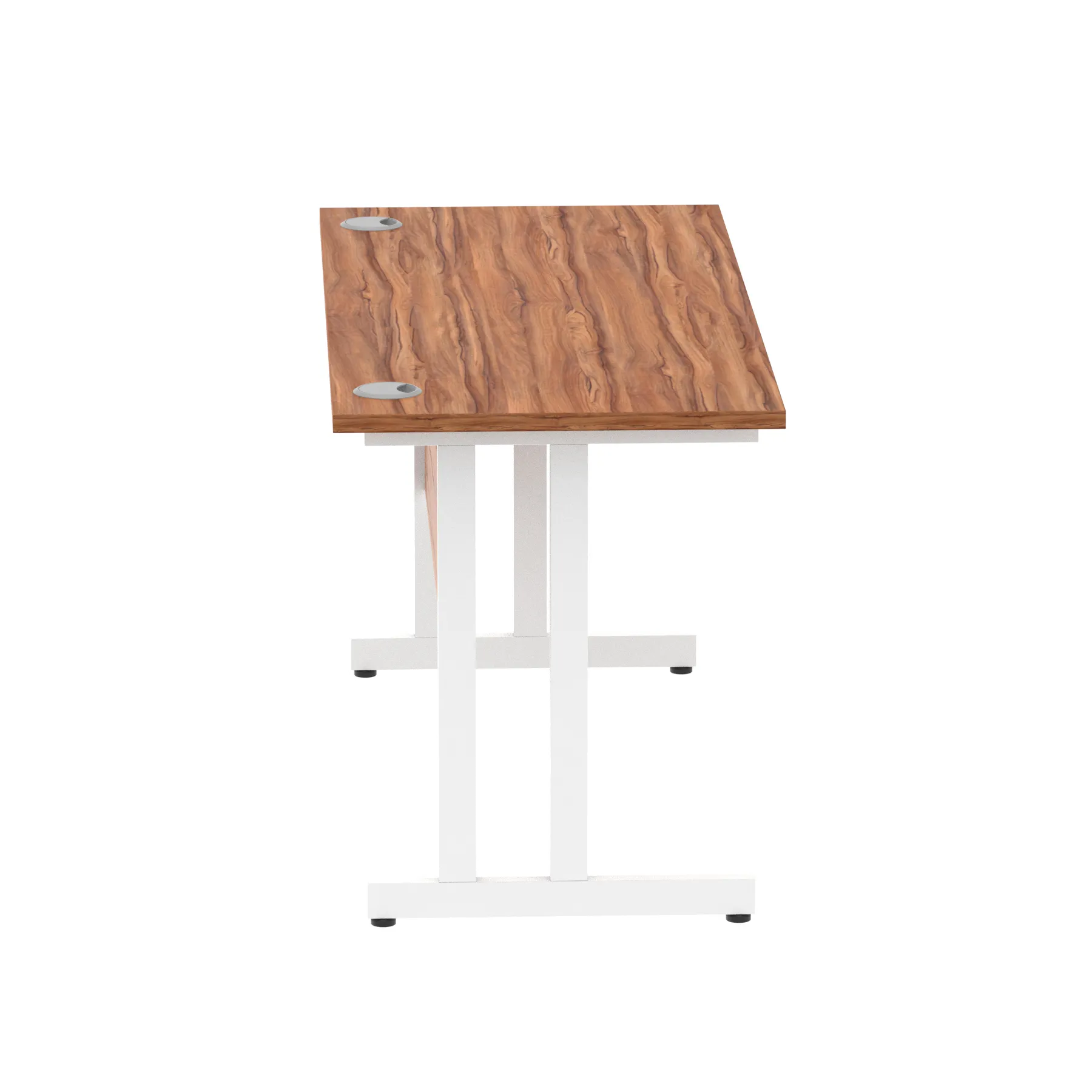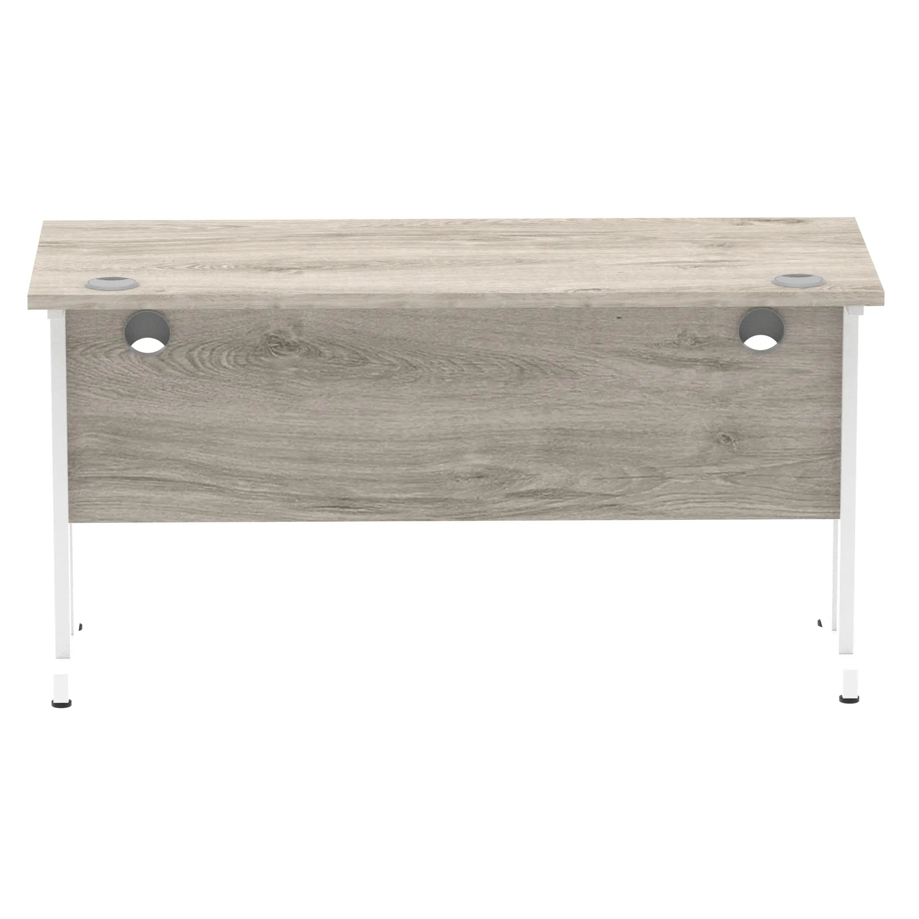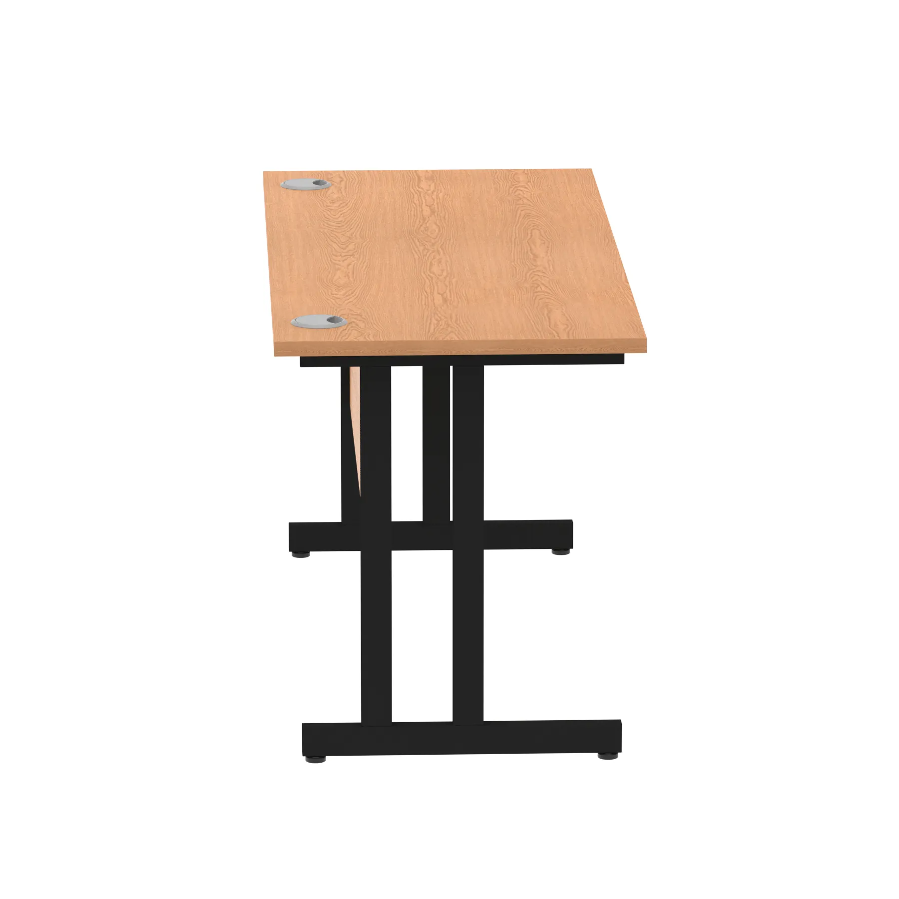 Impulse contract desk | 25mm tops | Heat resistant melamine finish | 18mm modesty panels | 2mm protective abs edging | Silver coated double strut legs | 2 cable ports | Height adjustable feet | Steel to steel fixings | 2 modesty panels slots |Deep set modesty panel (5″) allows for compatibility of most screen clamp fittings | Weight Capacity 135Kg