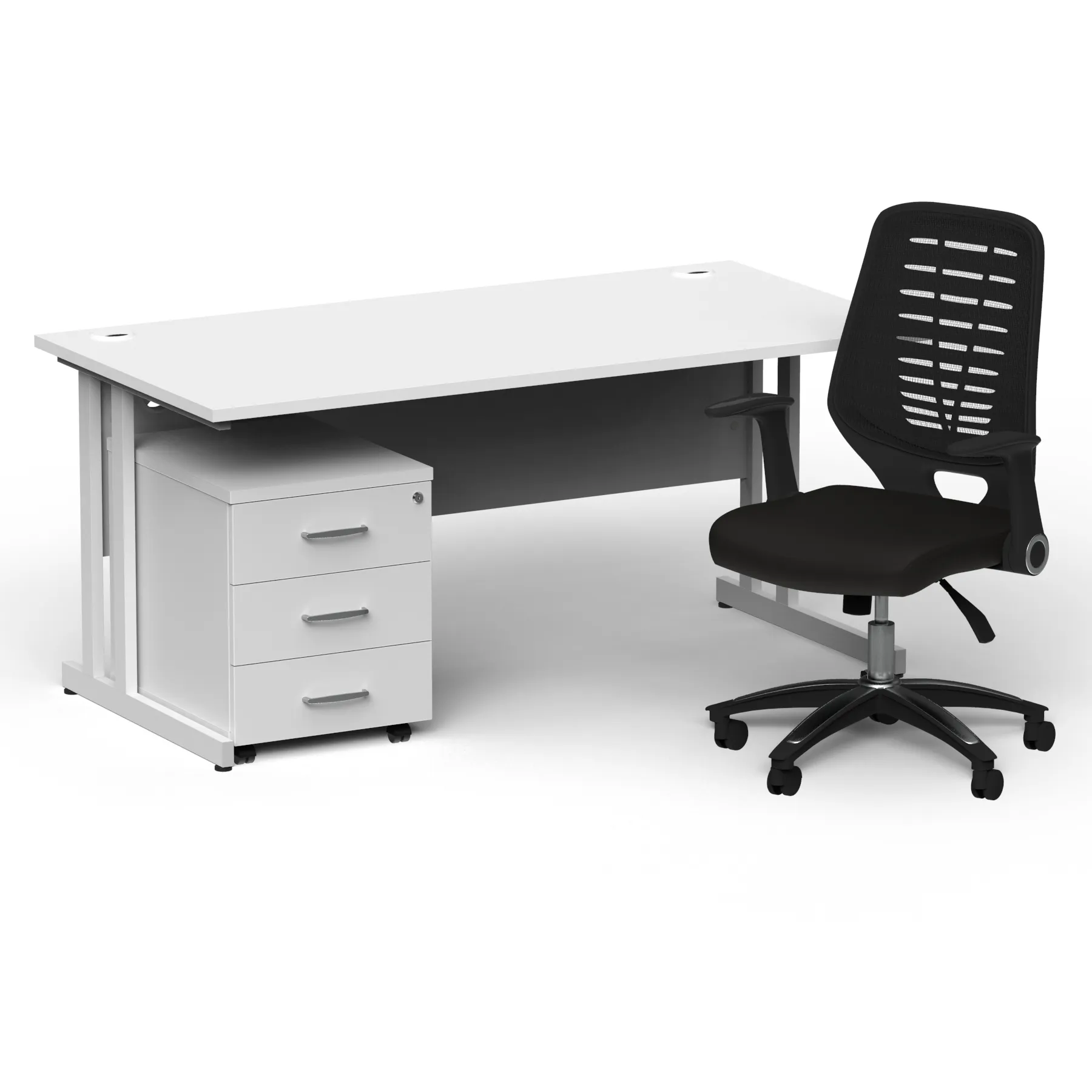 Impulse 1600mm Cantilever Straight Desk With Mobile Pedestal and Relay Black Back Operator Chair