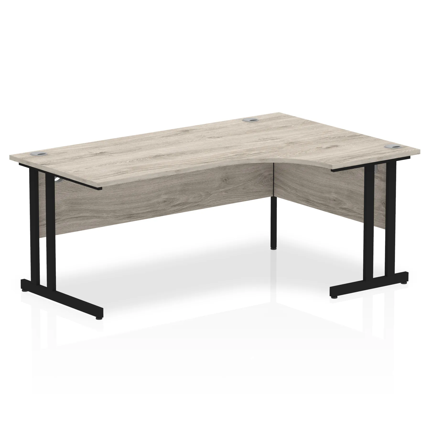 Impulse contract 1400 wide crescent desk | 25mm tops | Heat resistant beech melamine finish | 18mm modesty panels | 2mm protective abs edging | Silver coated double strut legs | 3 cable ports | Height adjustable feet | Steel to steel fixings | 3 modesty panels slots | 600 deep | Deep set modesty panel (5″) allows for compatibility of most screen clamp fittings | Weight Capacity 135Kg