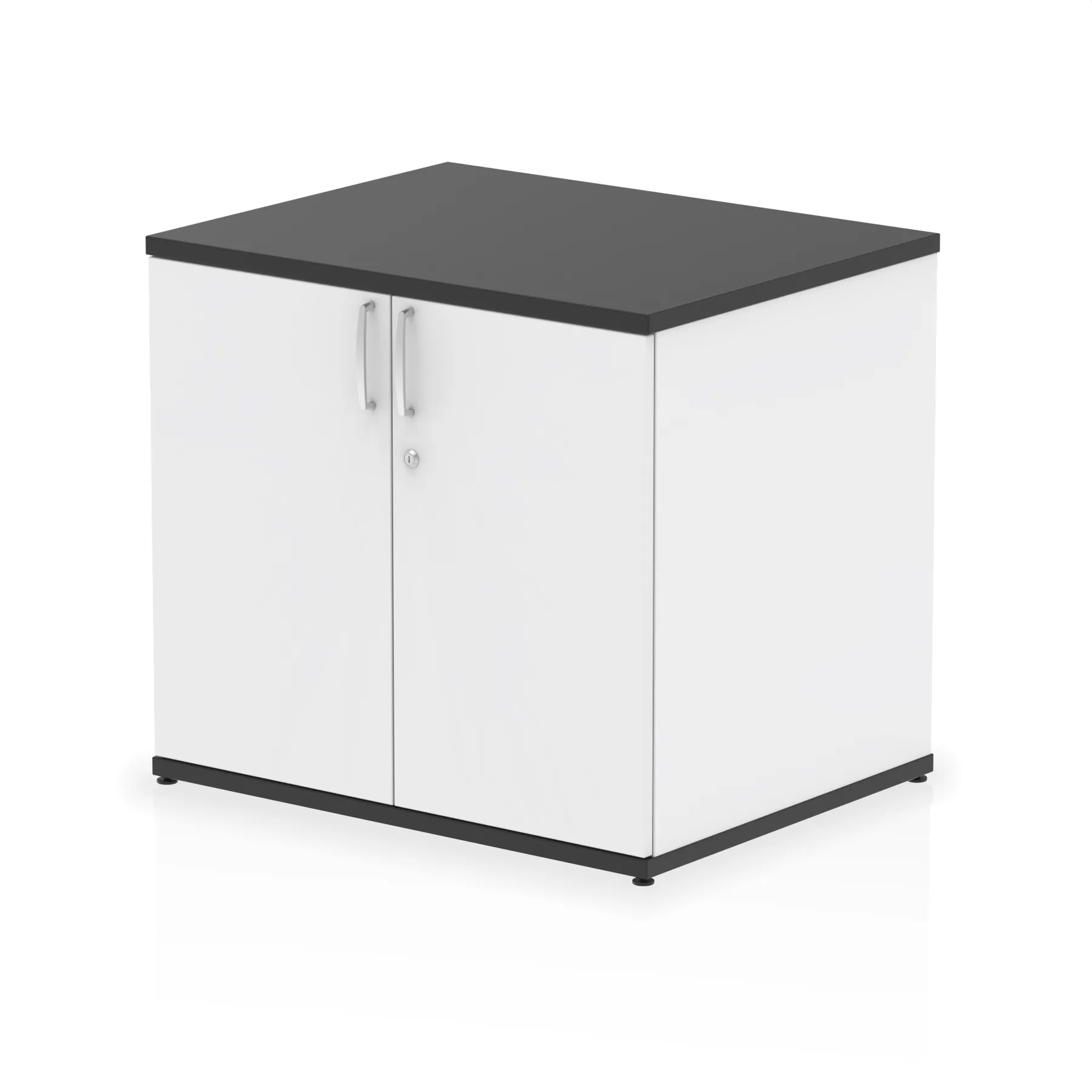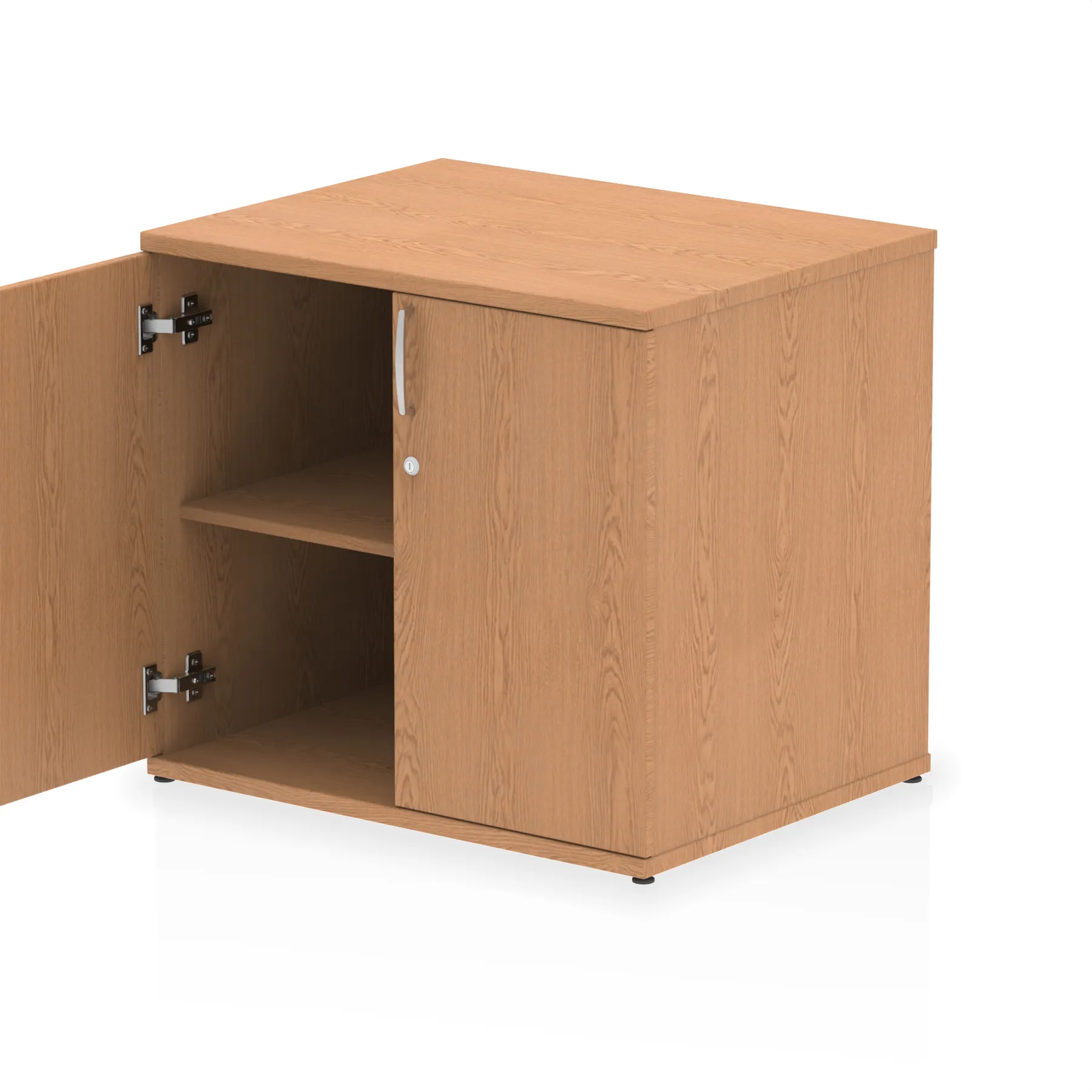 Impulse 800 wide cupboard | 25mm thick wood finish | Fits on end of 600 deep desk | 2mm abs protective edges | Steel to steel fixings | 18mm side walls | Adjustable shelf | Adjustable feet | Heat resistant melamine finish | Solid back board | Matching doors | Weight Capacity: 20Kg per shelf