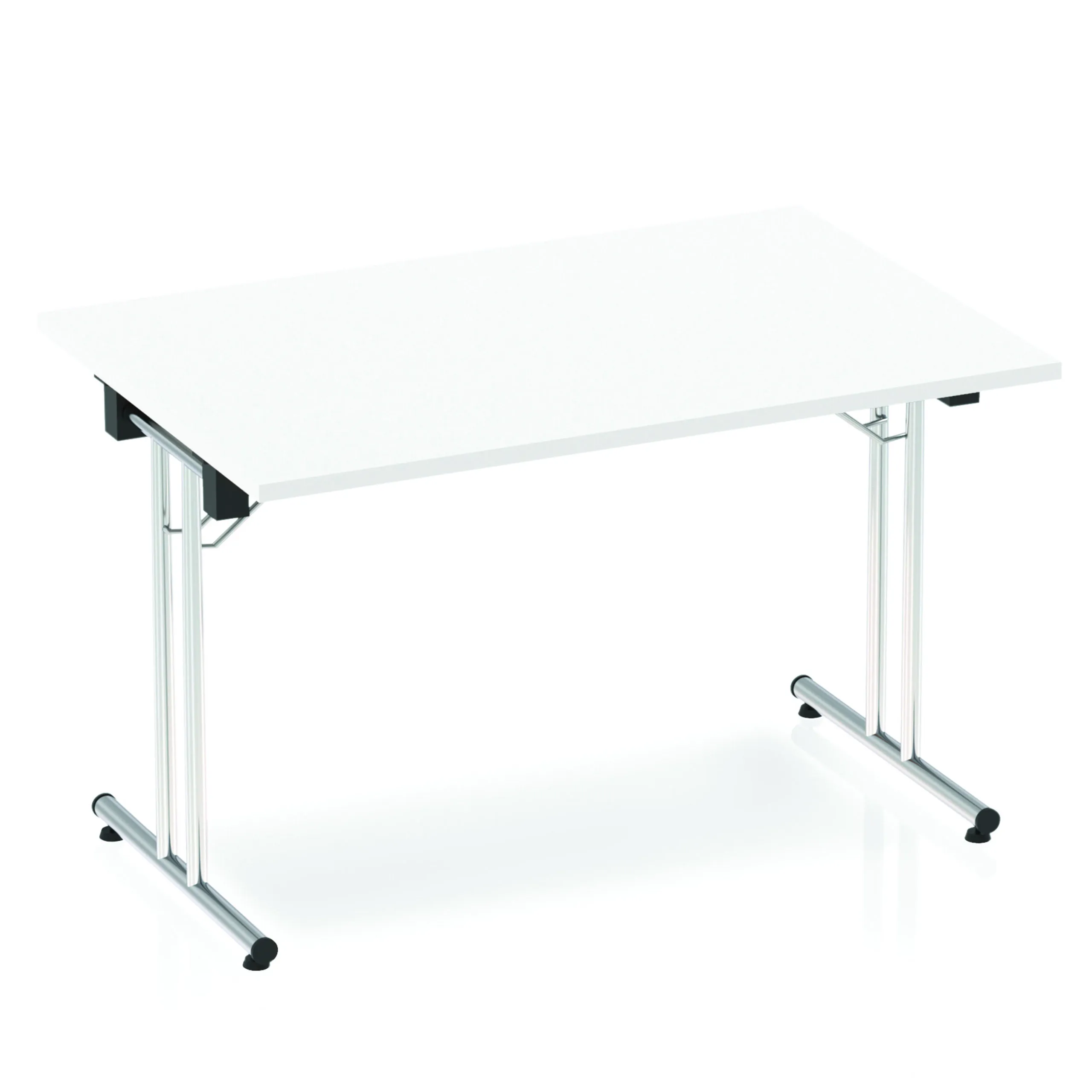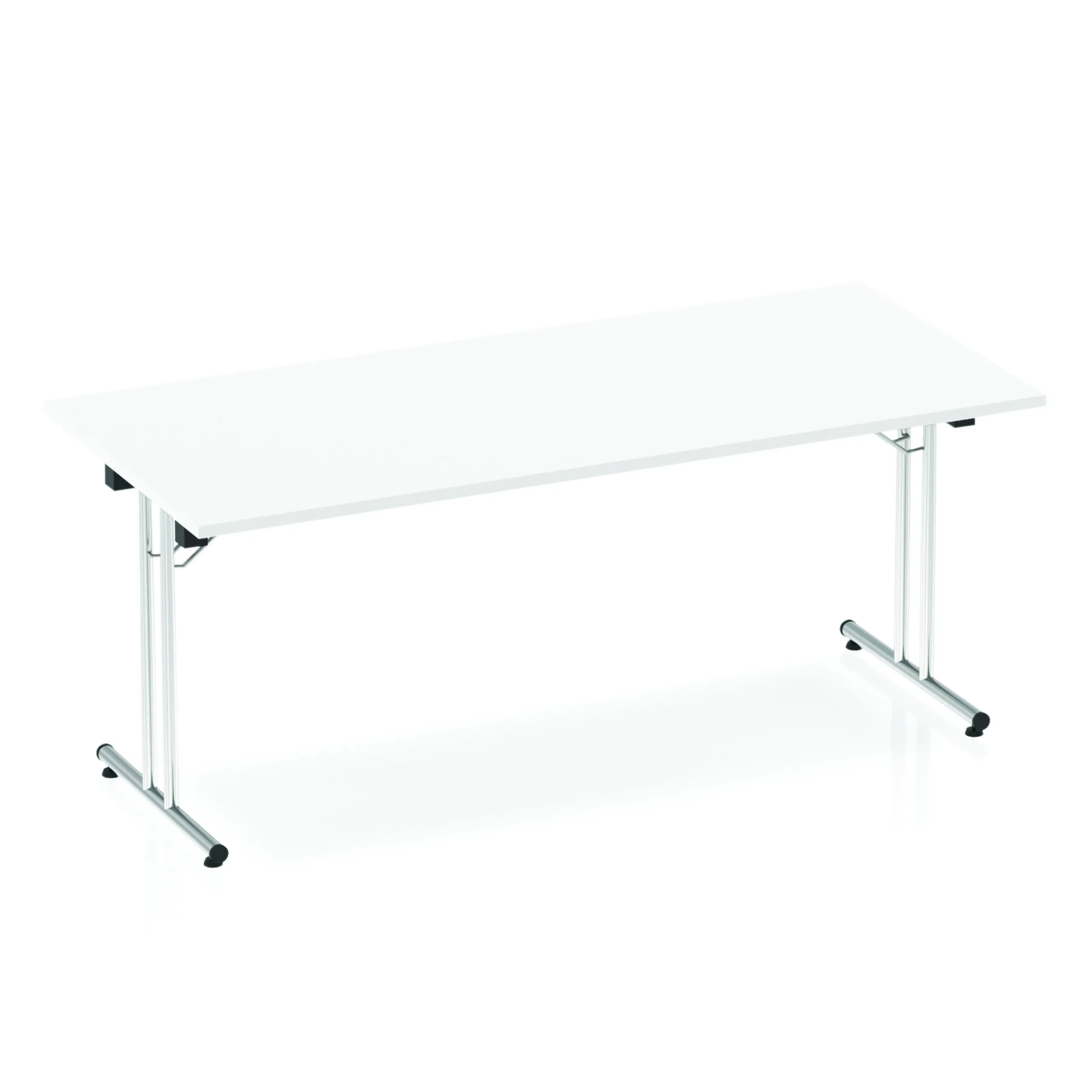 Impulse freestanding meeting table | Classic rectangular shape |Table folds easily for space efficient storage | Provides excellent team working environment | 25mm thick top | Attractive silver coated leg | 2mm abs protective edging | Heat resistant beech melamine finish | Steel to steel fittings | Weight Capacity 135Kg