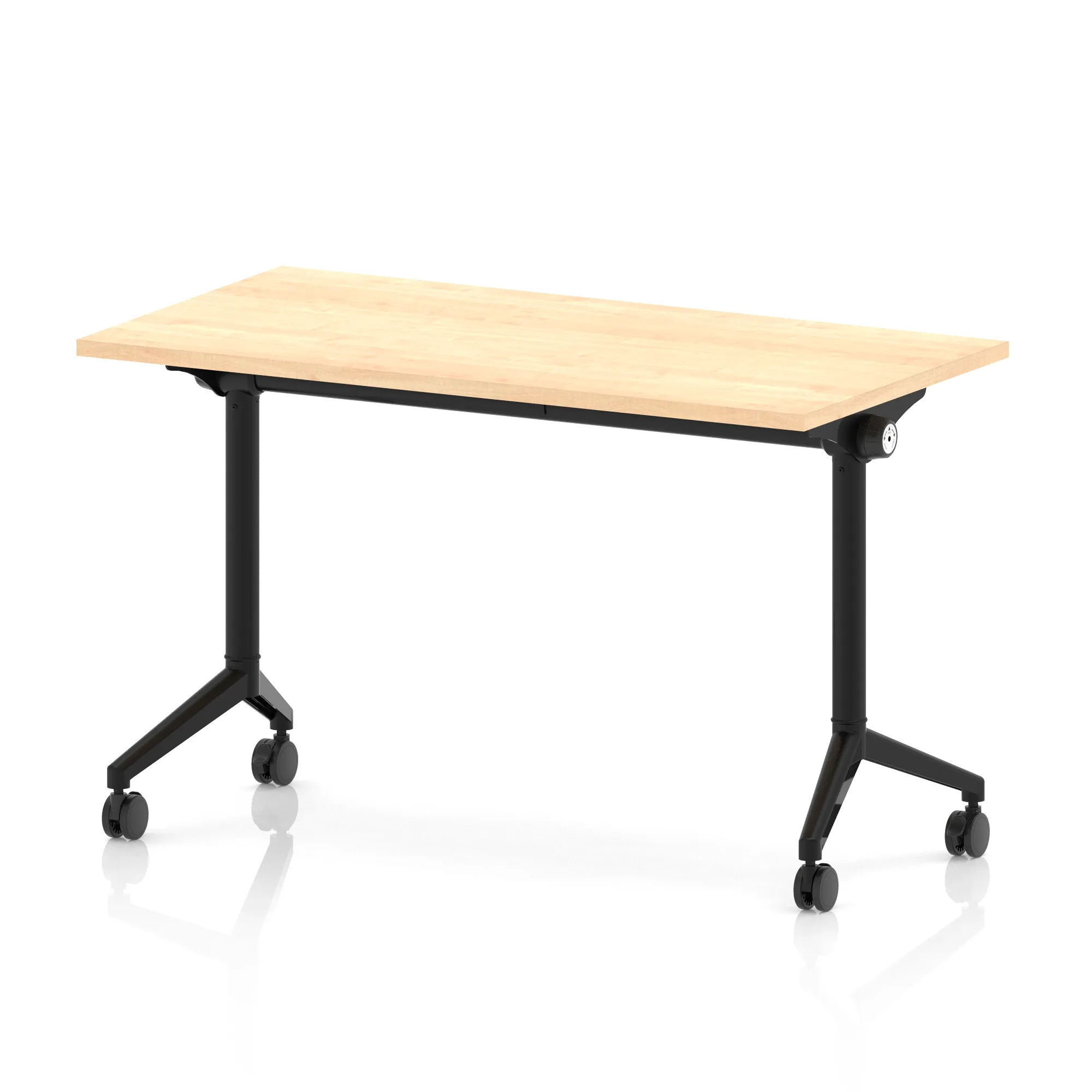 • Impulse Plus freestanding meeting table • Rectangular table flips easily for space efficient storage • Provides excellent team working environment • 25mm thick top • Attractive black and silver coated leg • 2mm abs protective edging • Heat resistant melamine finish • Steel to steel fittings • Weight Capacity: 100Kg