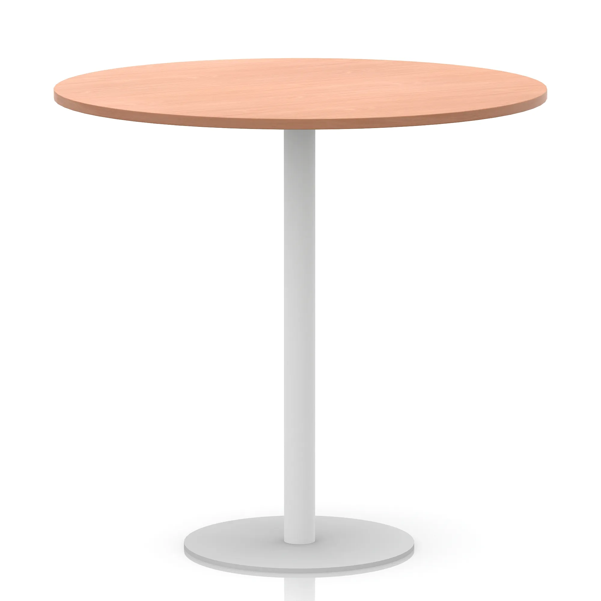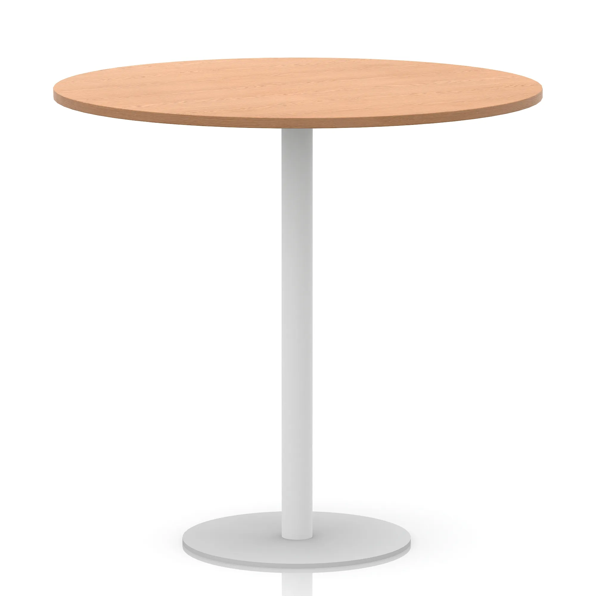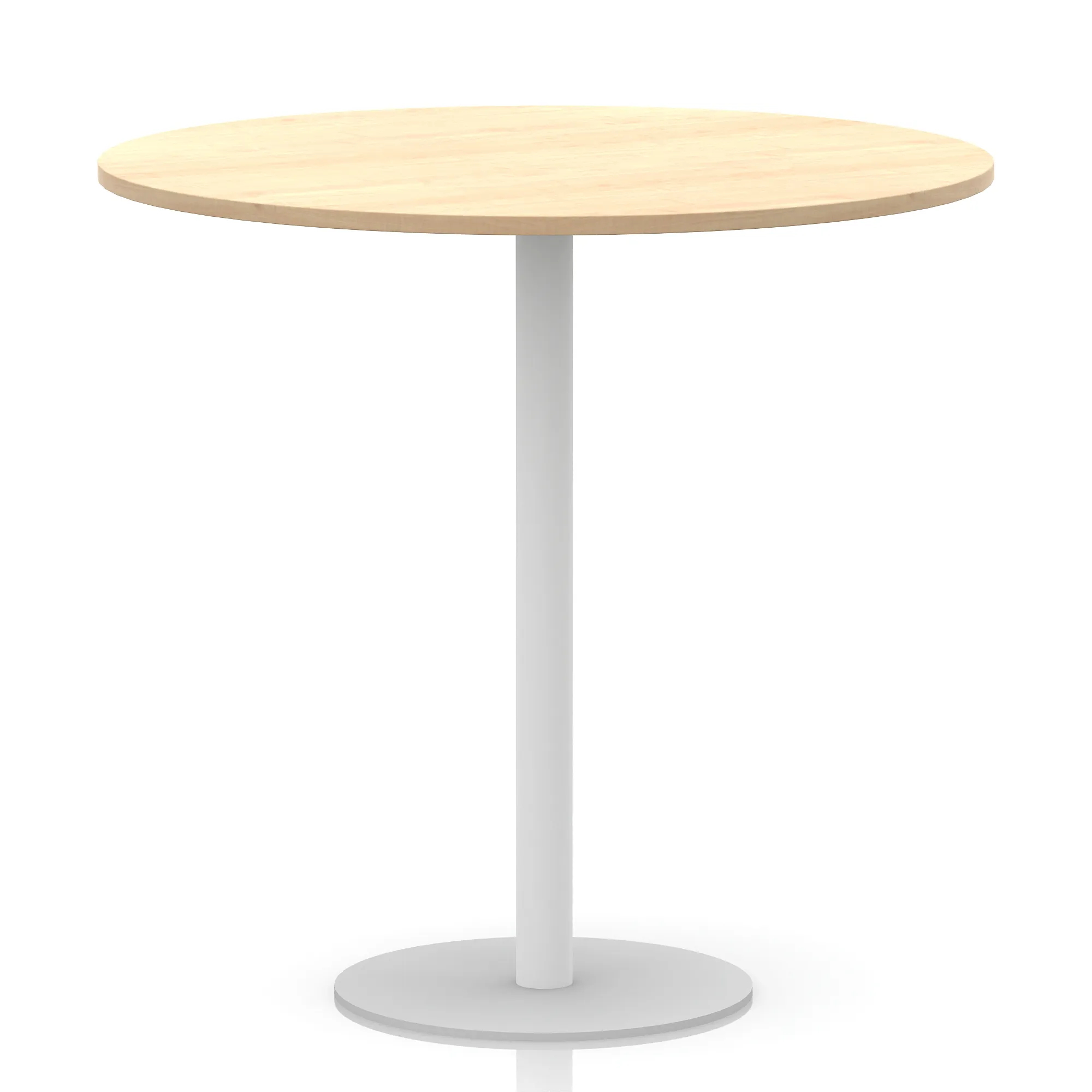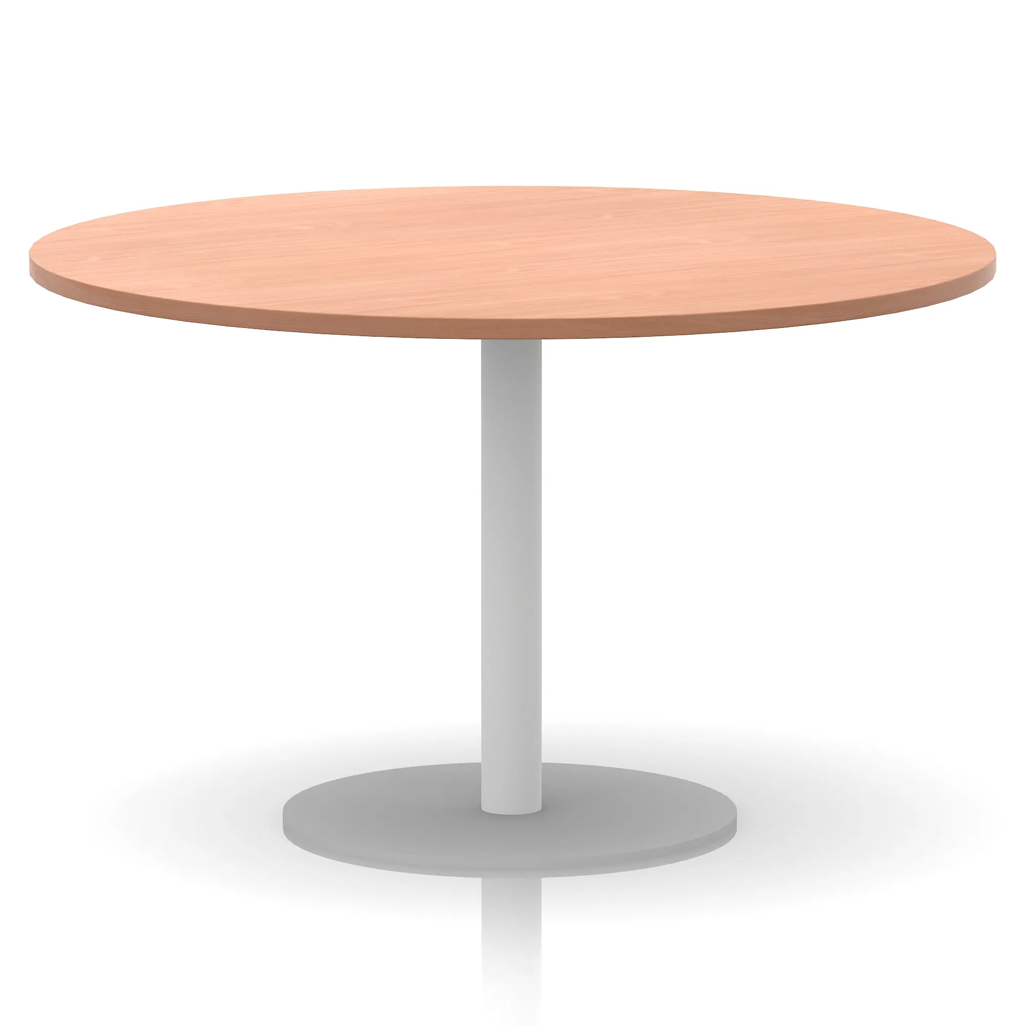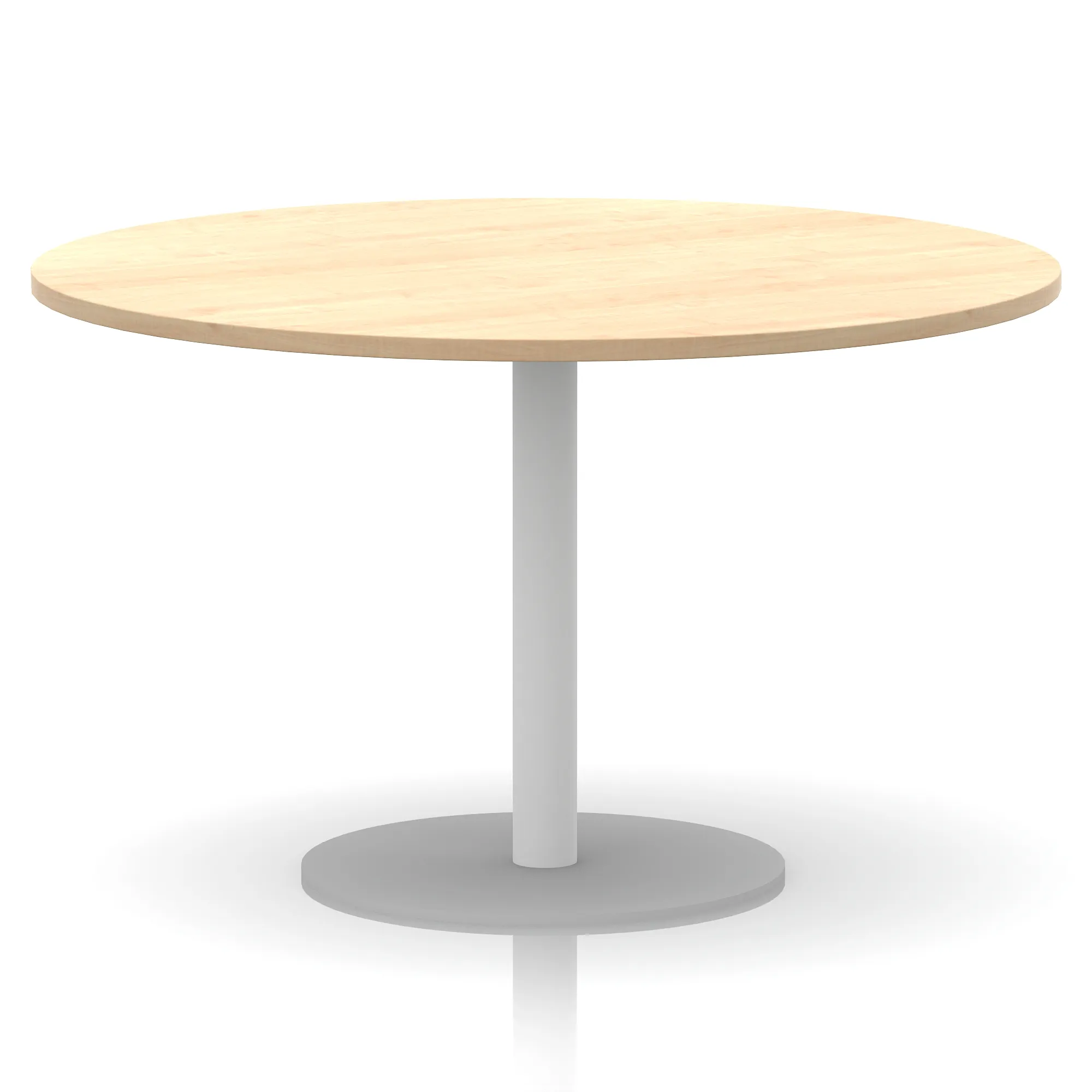 25mm thick desk top profile | Brushed stainless steel effect circular base (580mm diameter) | Brushed stainless steel pillars (76mm diameter) | Weighted base provides stability | Two part bolted frame system