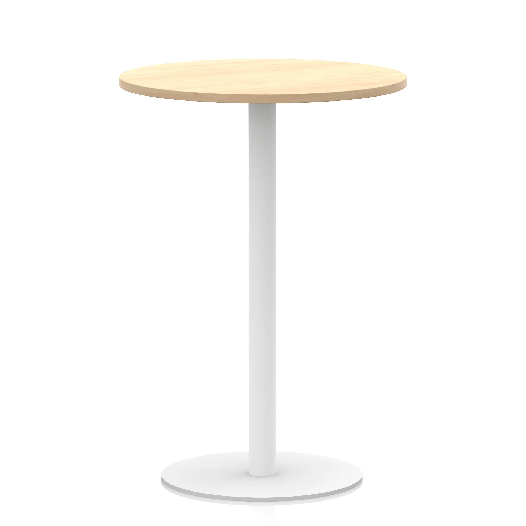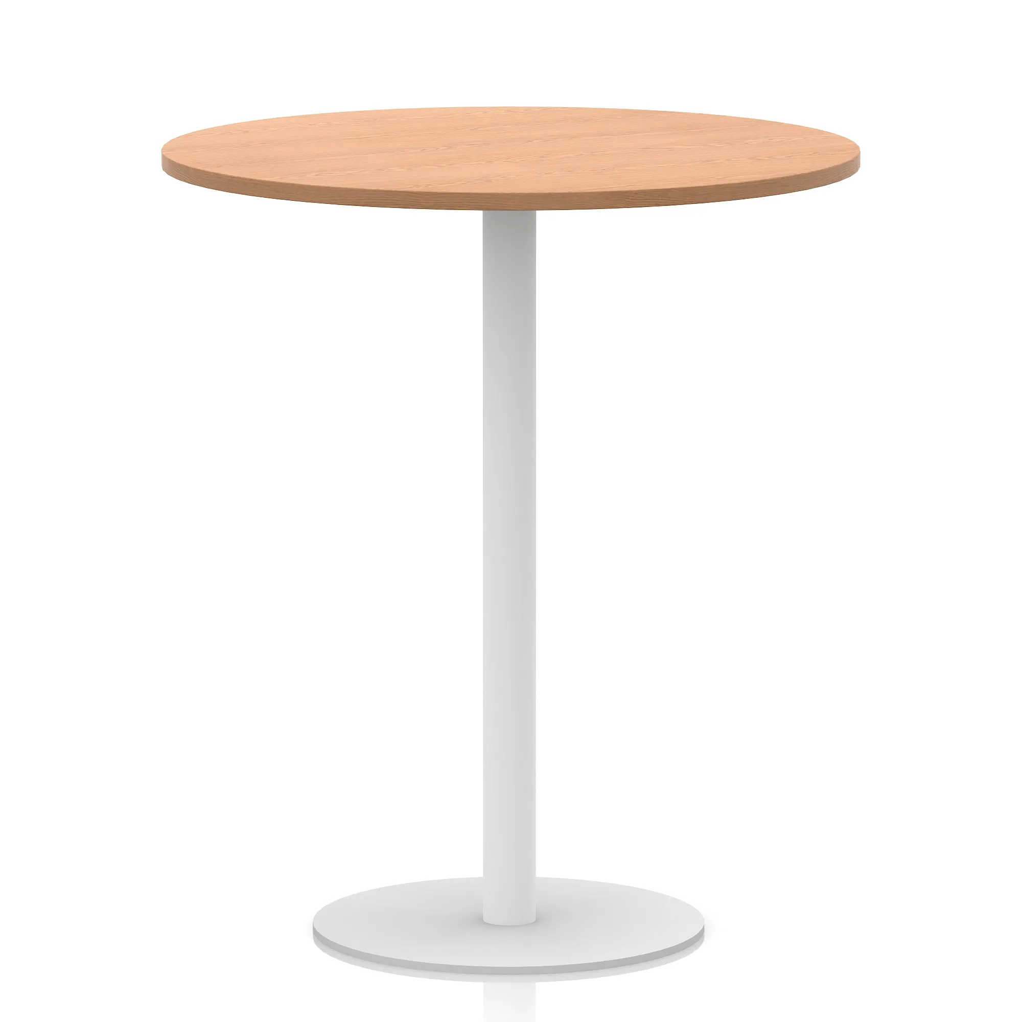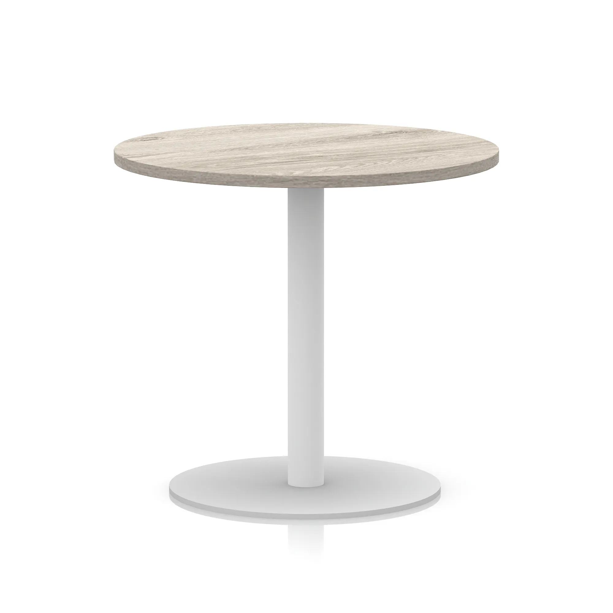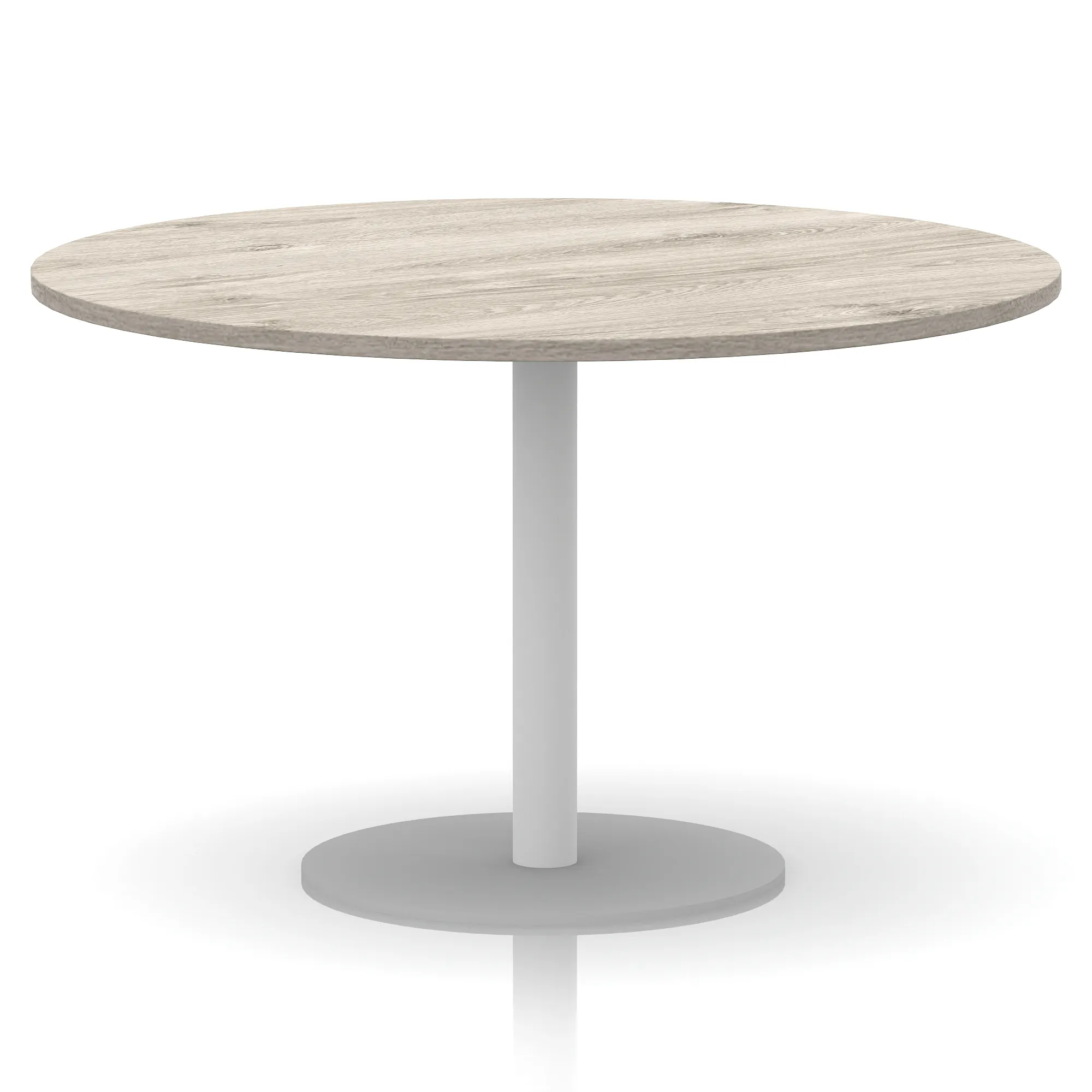 25mm thick desk top profile | Brushed stainless steel effect circular base (580mm diameter) | Brushed stainless steel pillars (76mm diameter) | Weighted base provides stability | Two part bolted frame system