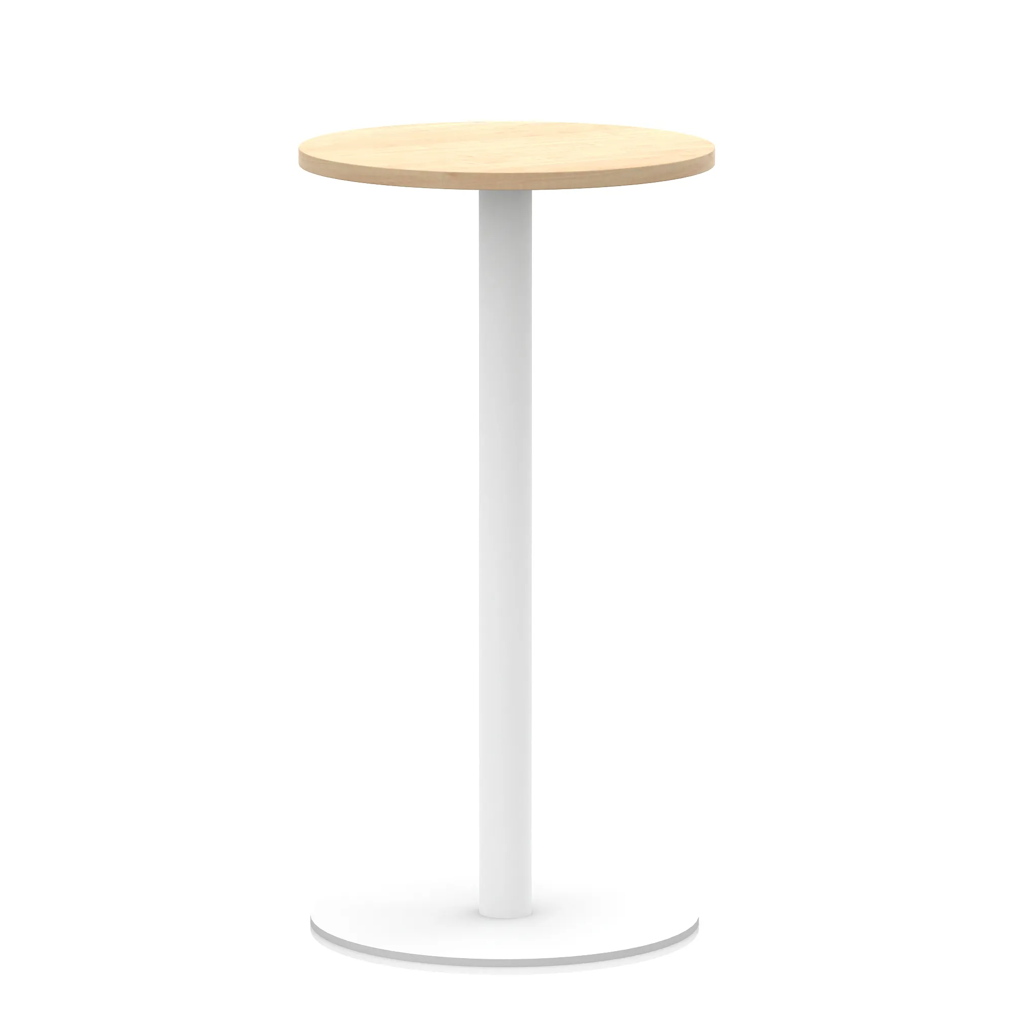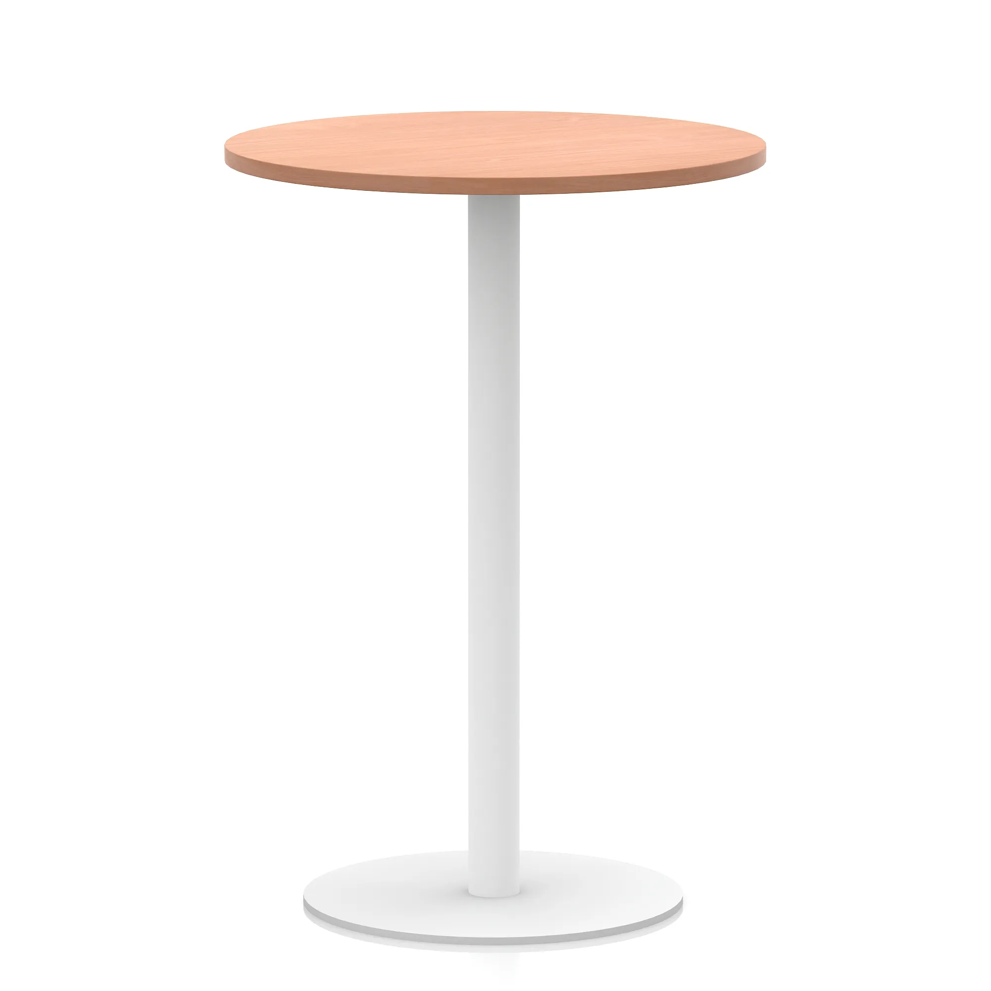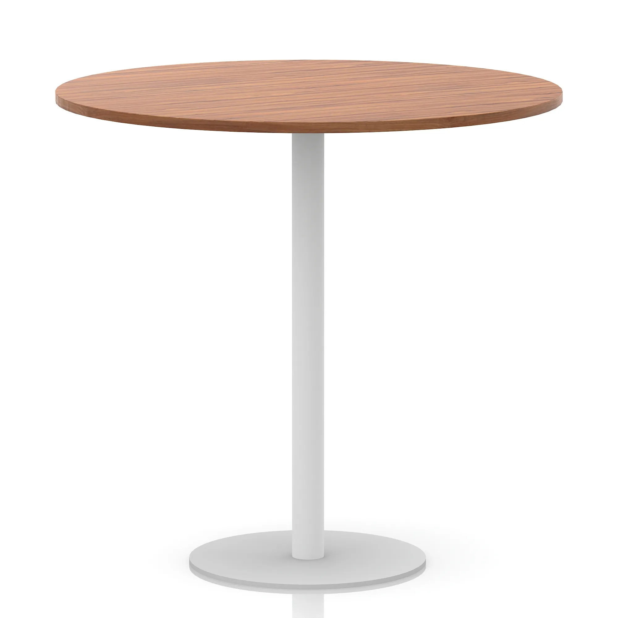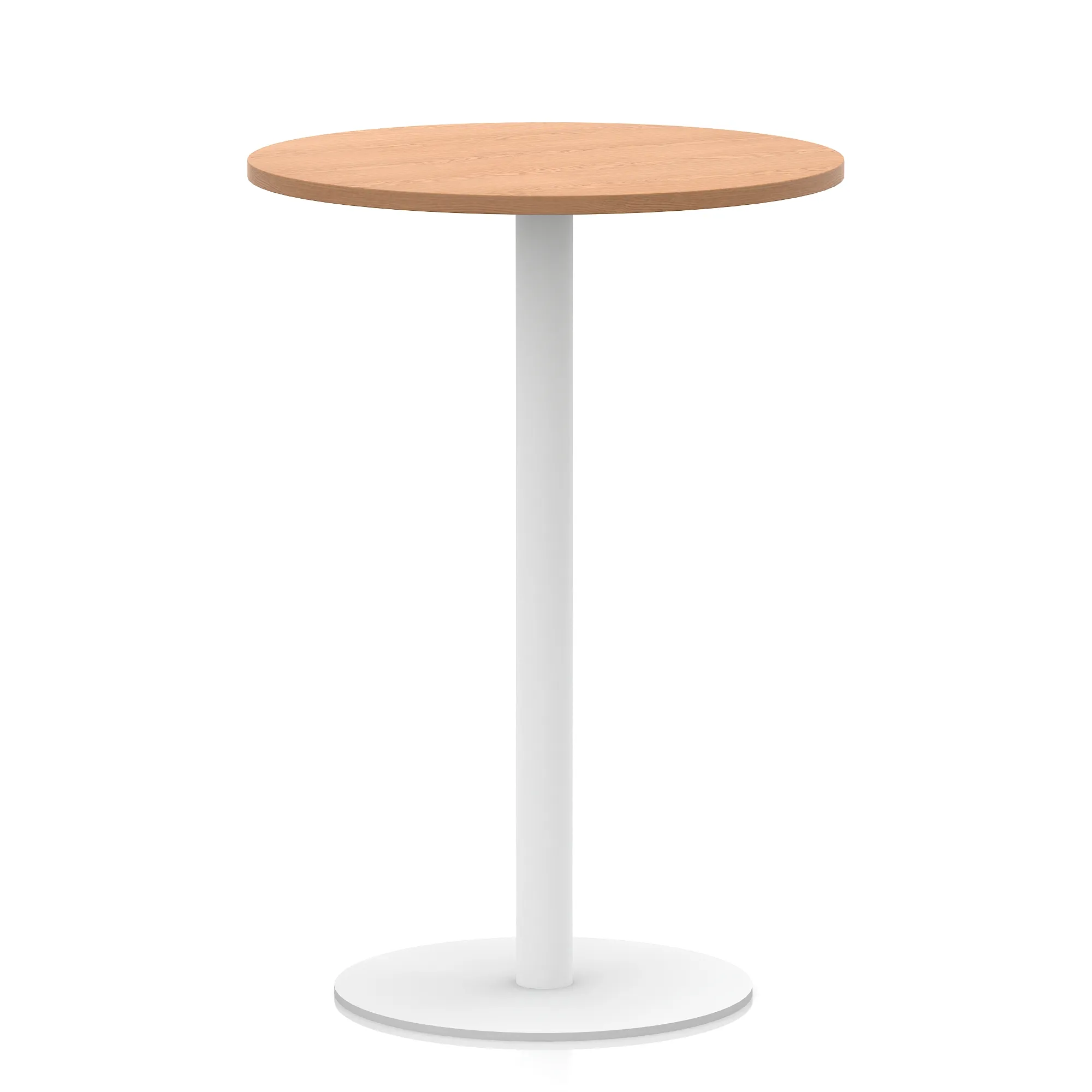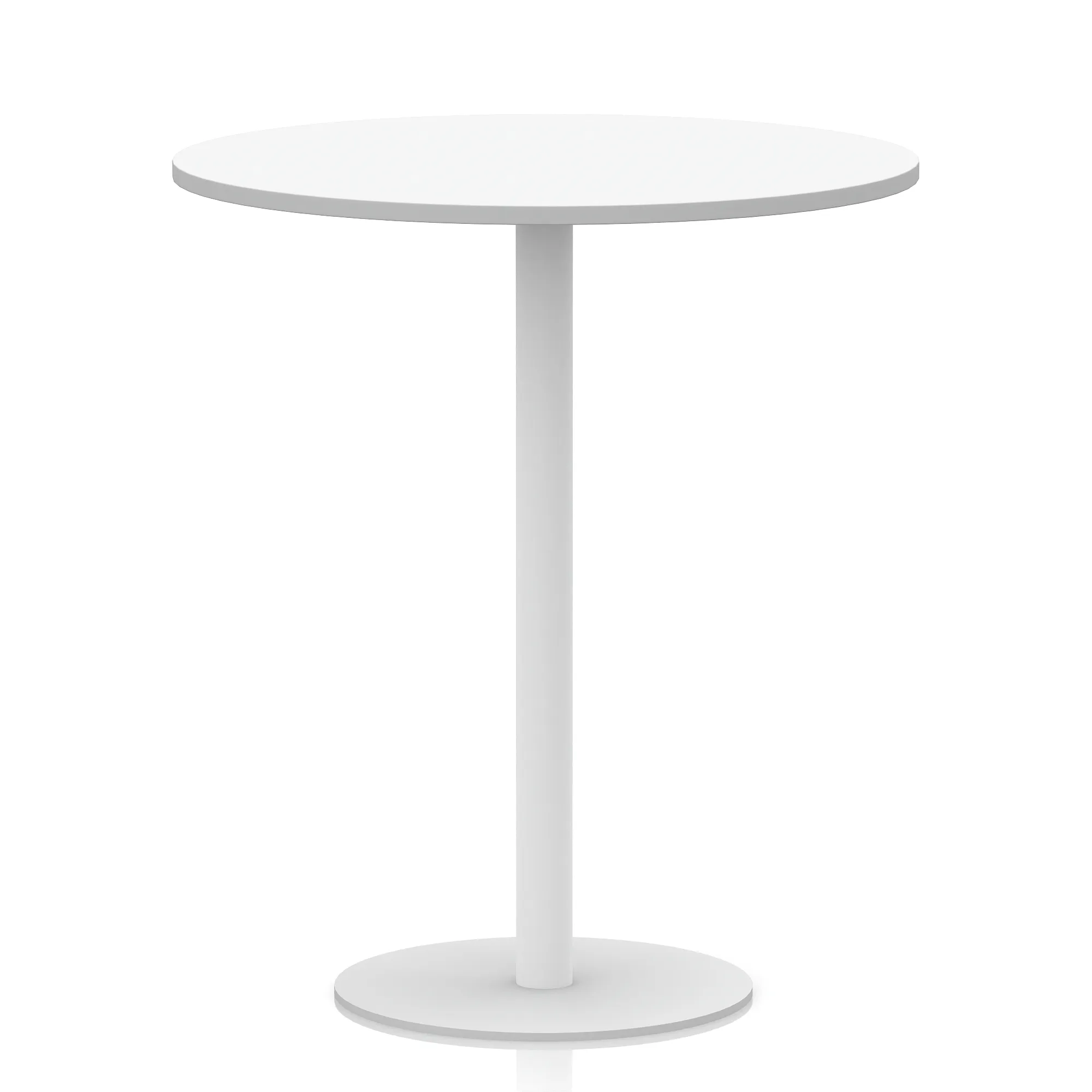 25mm thick desk top profile | Brushed stainless steel effect circular base (580mm diameter) | Brushed stainless steel pillars (76mm diameter) | Weighted base provides stability | Two part bolted frame system