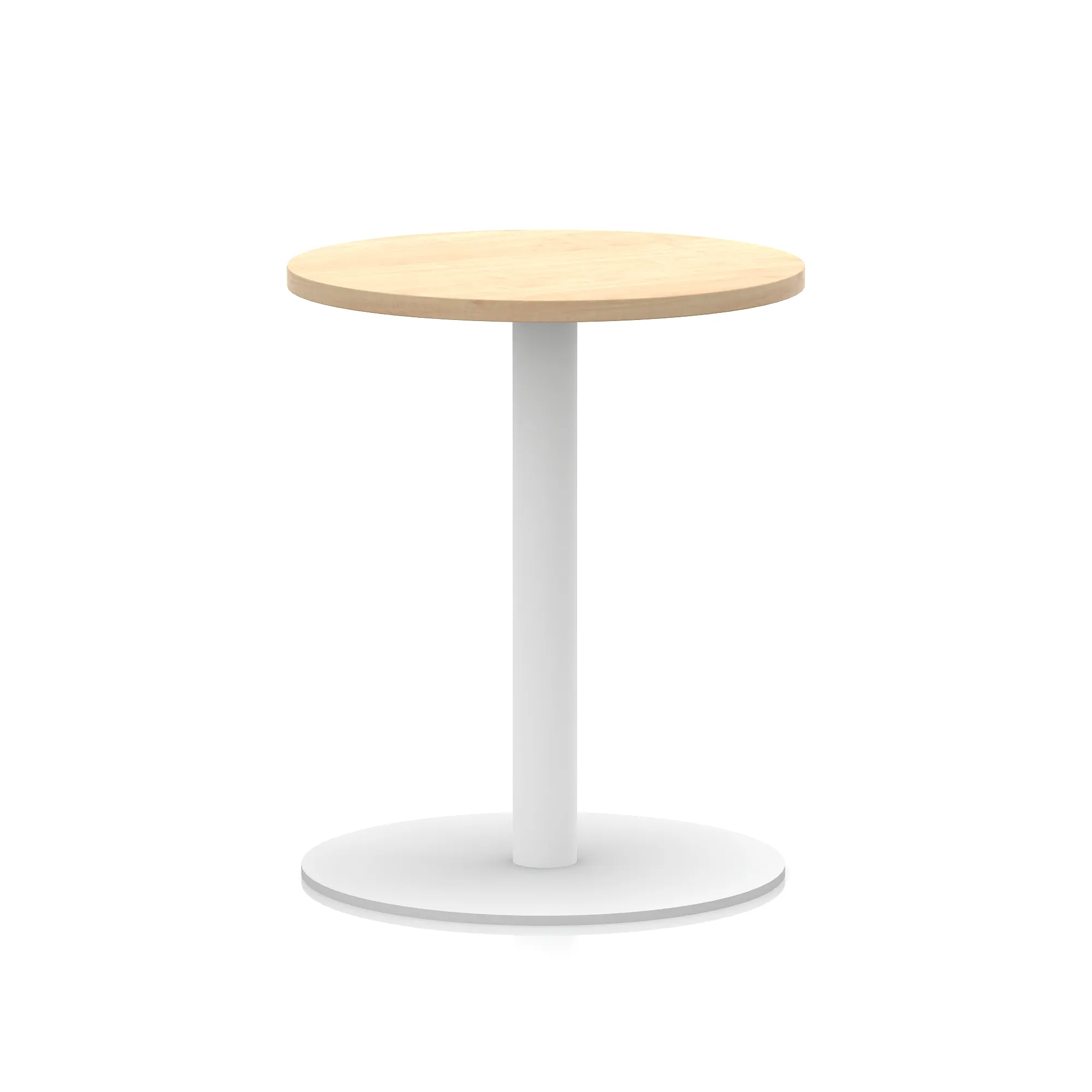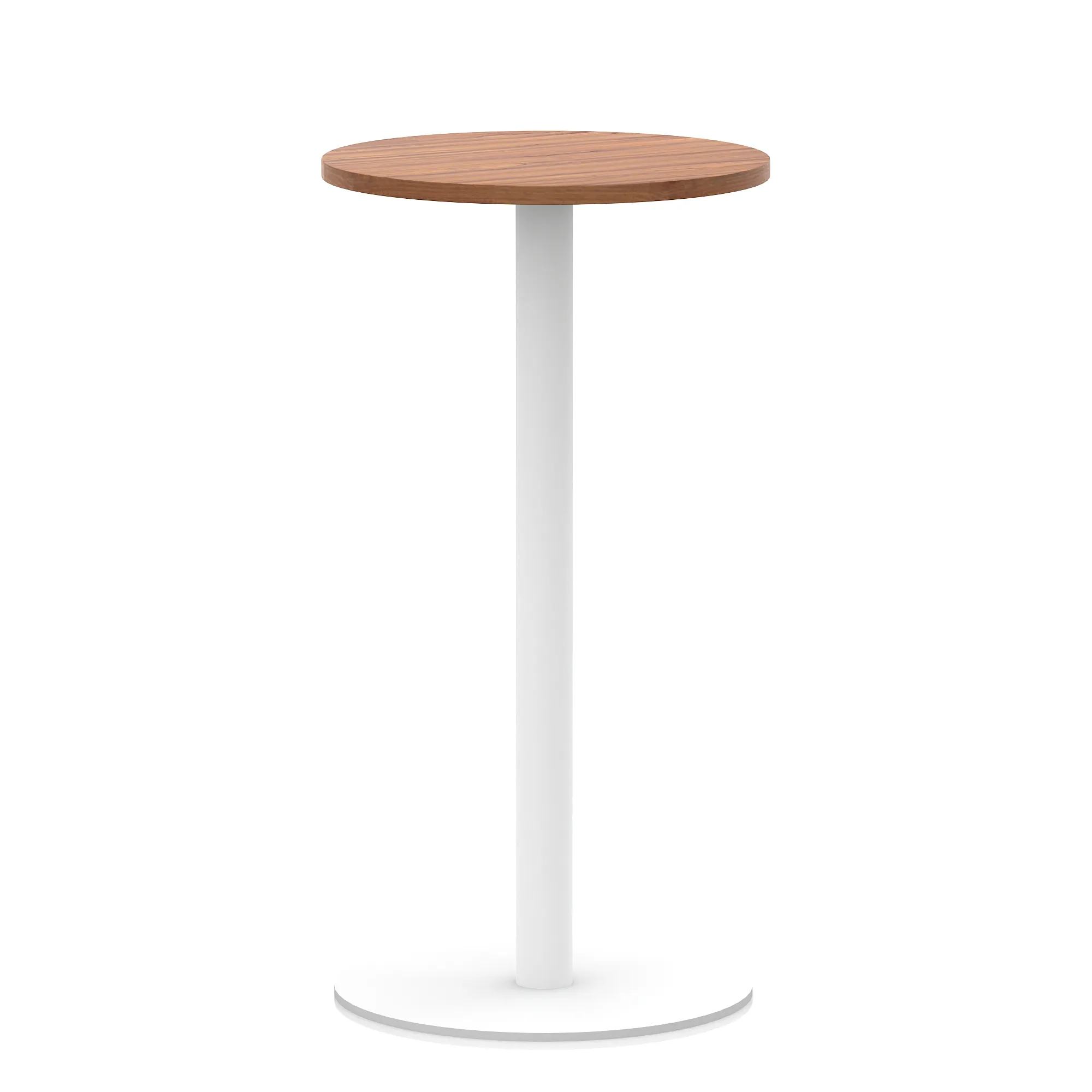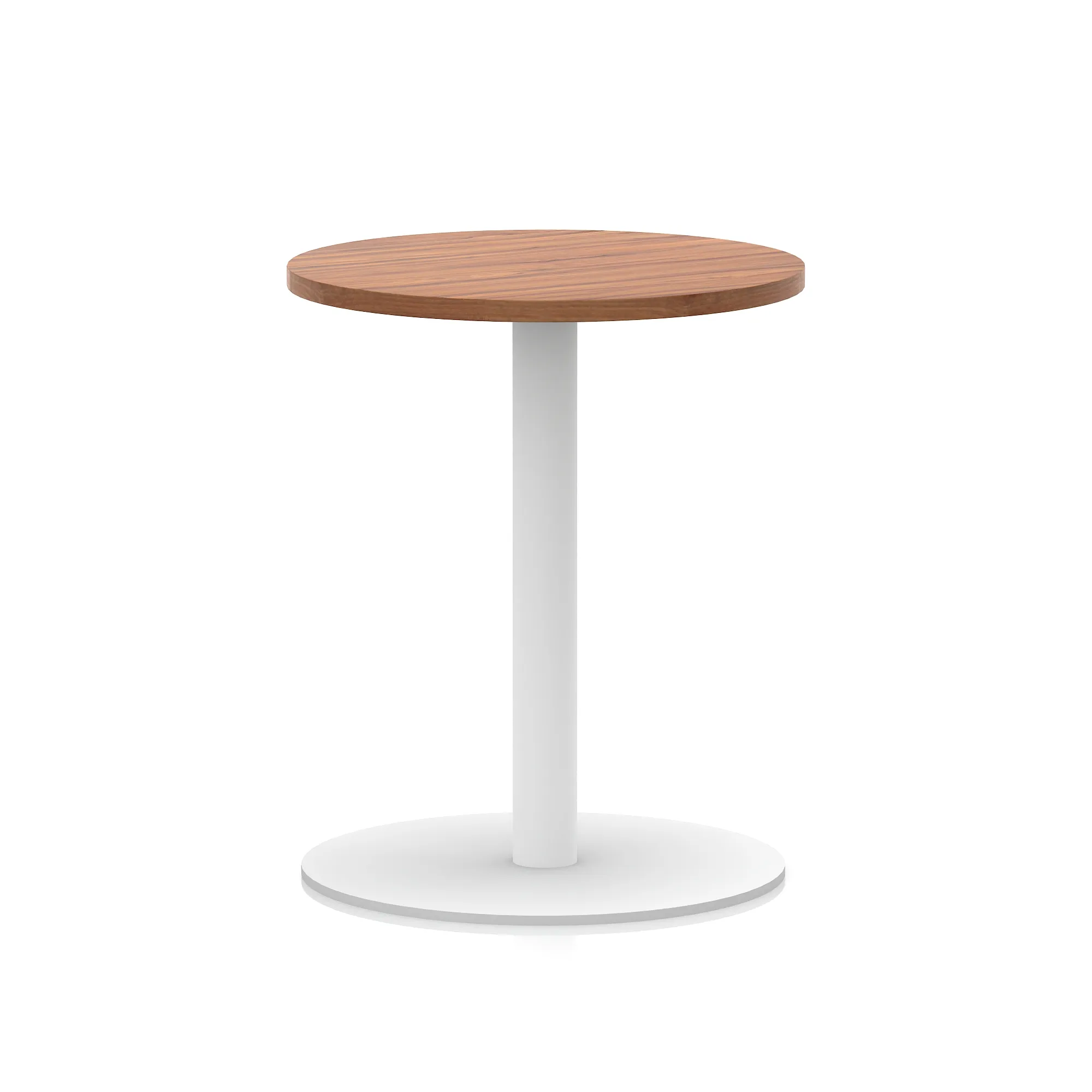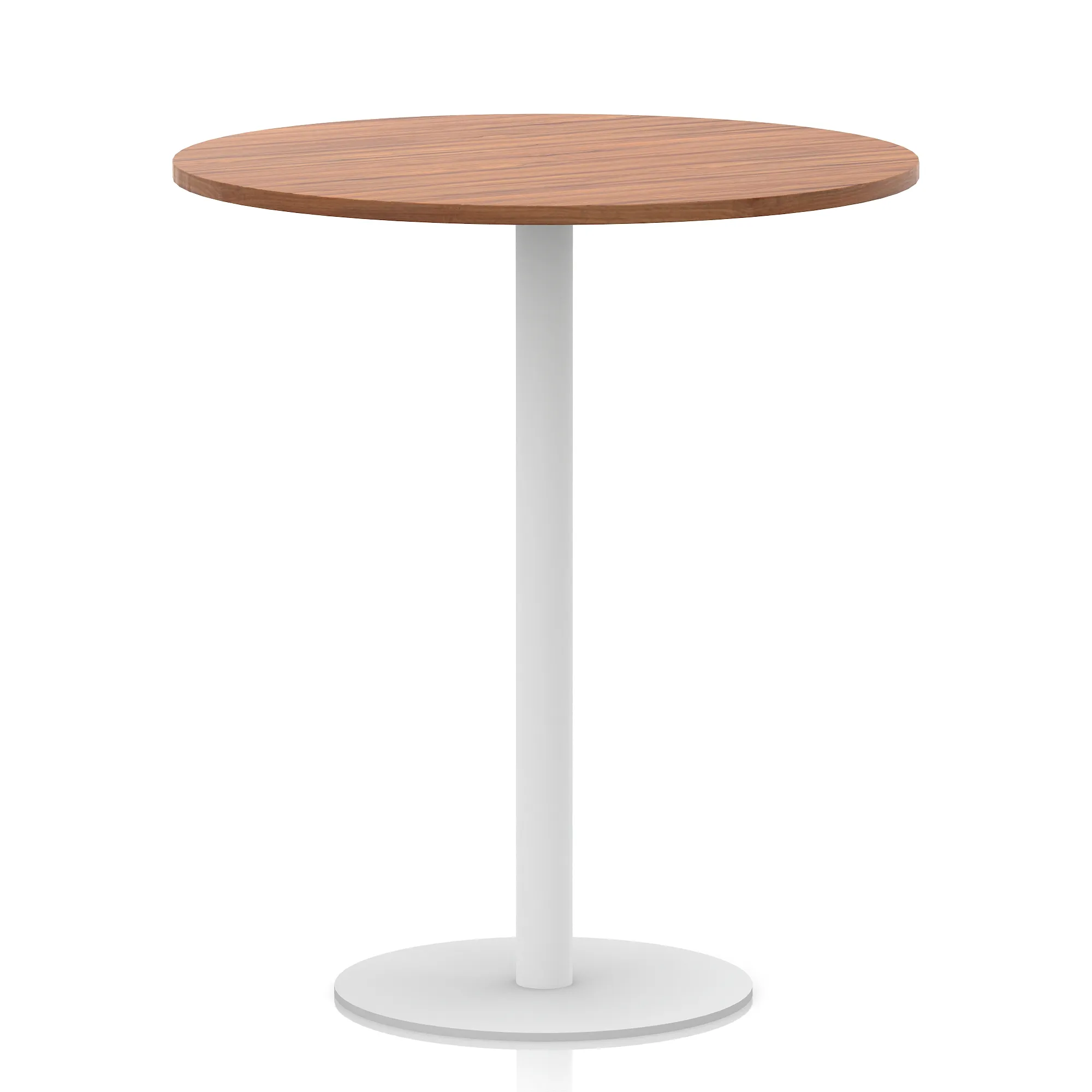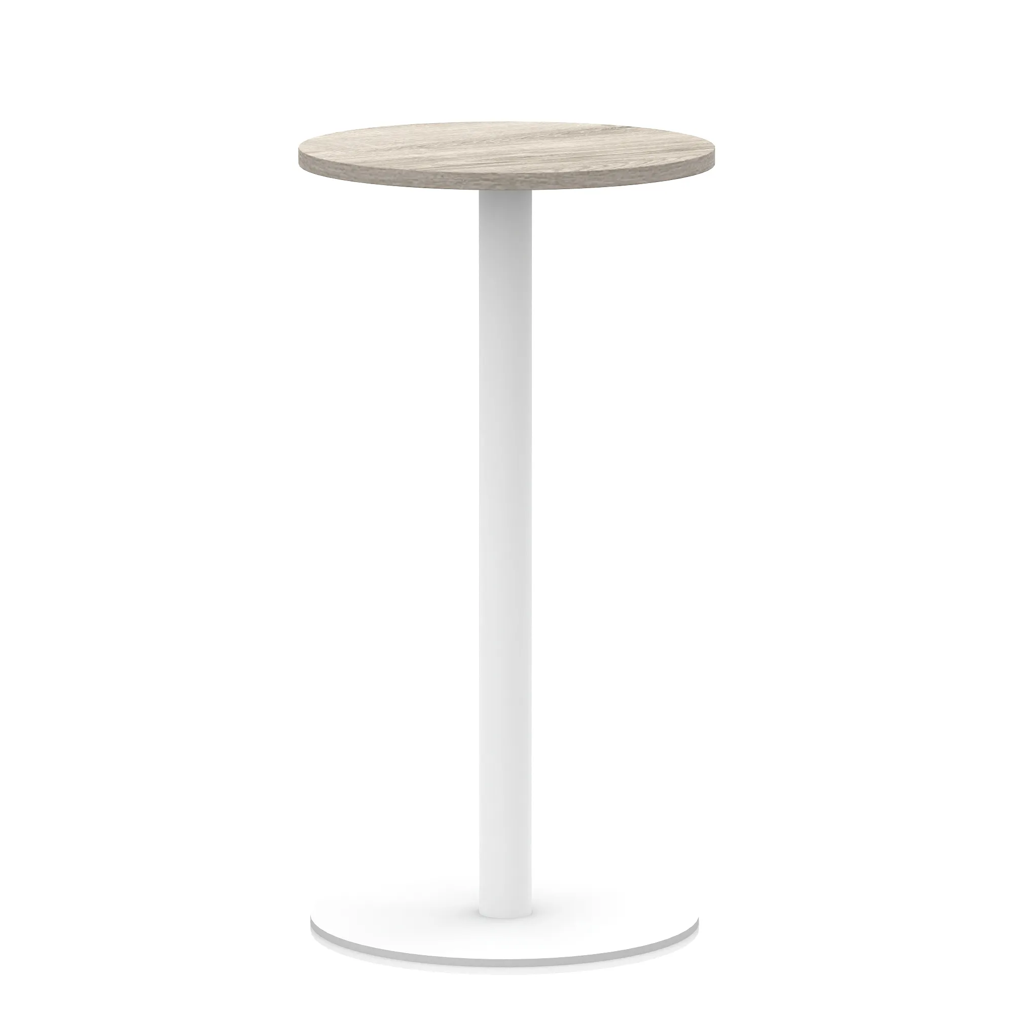 25mm thick desk top profile | Brushed stainless steel effect circular base (580mm diameter) | Brushed stainless steel pillars (76mm diameter) | Weighted base provides stability | Two part bolted frame system