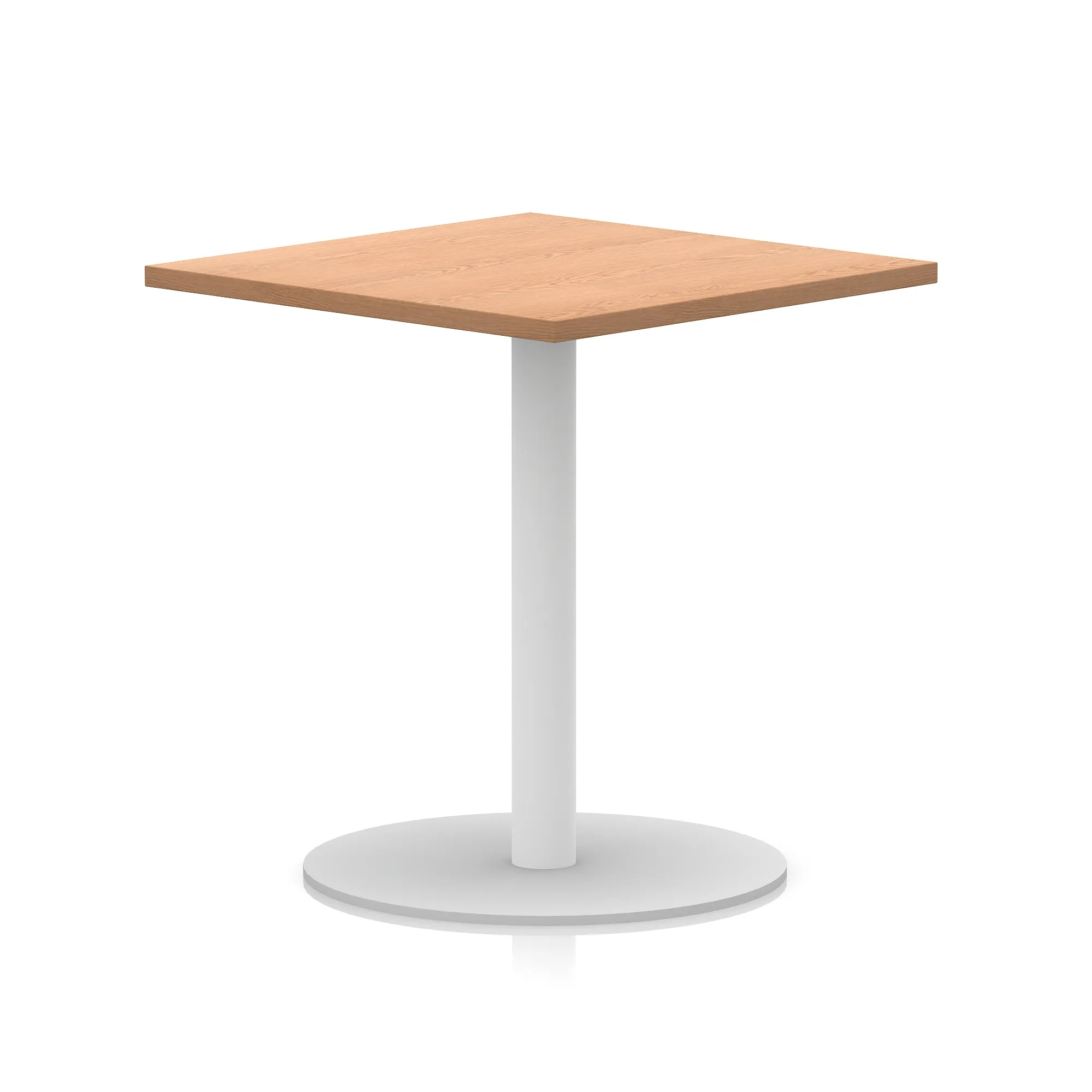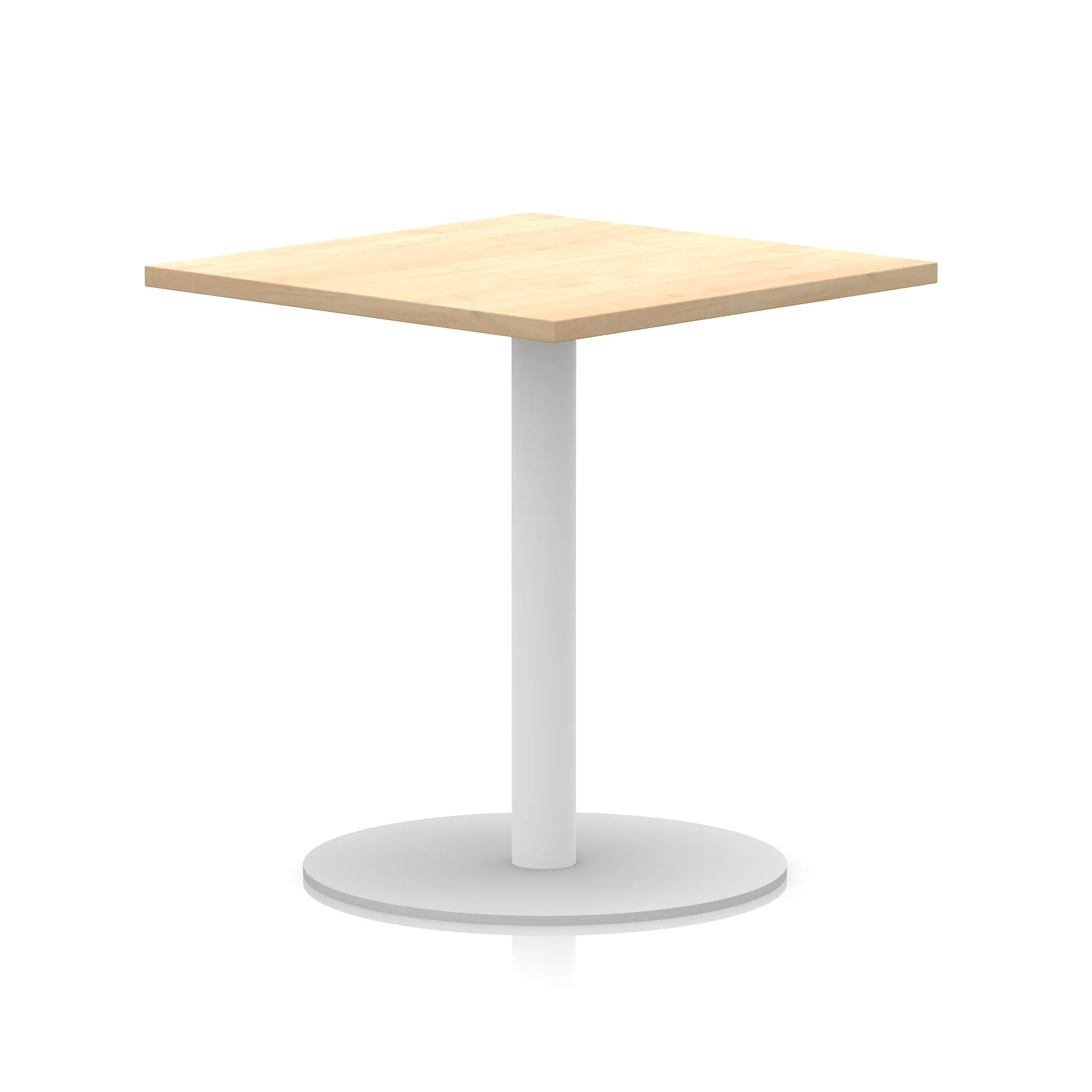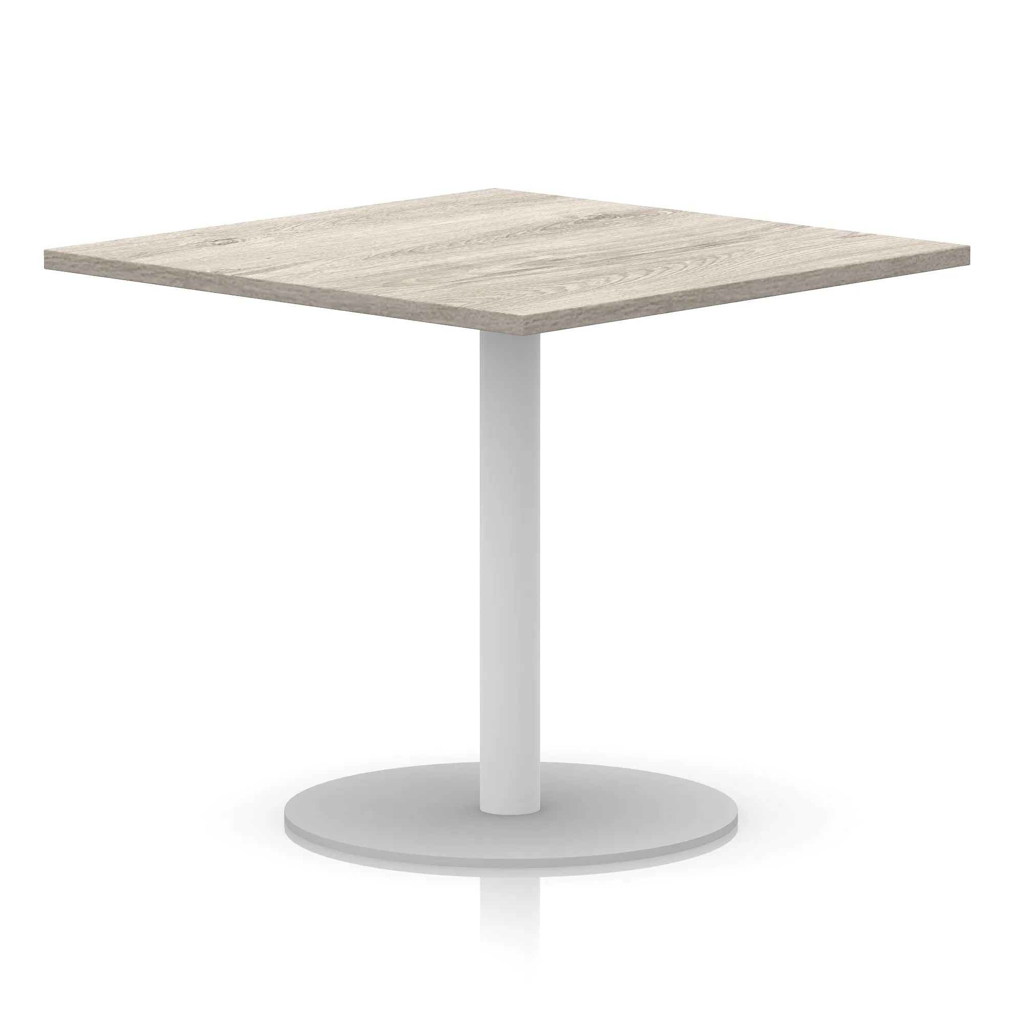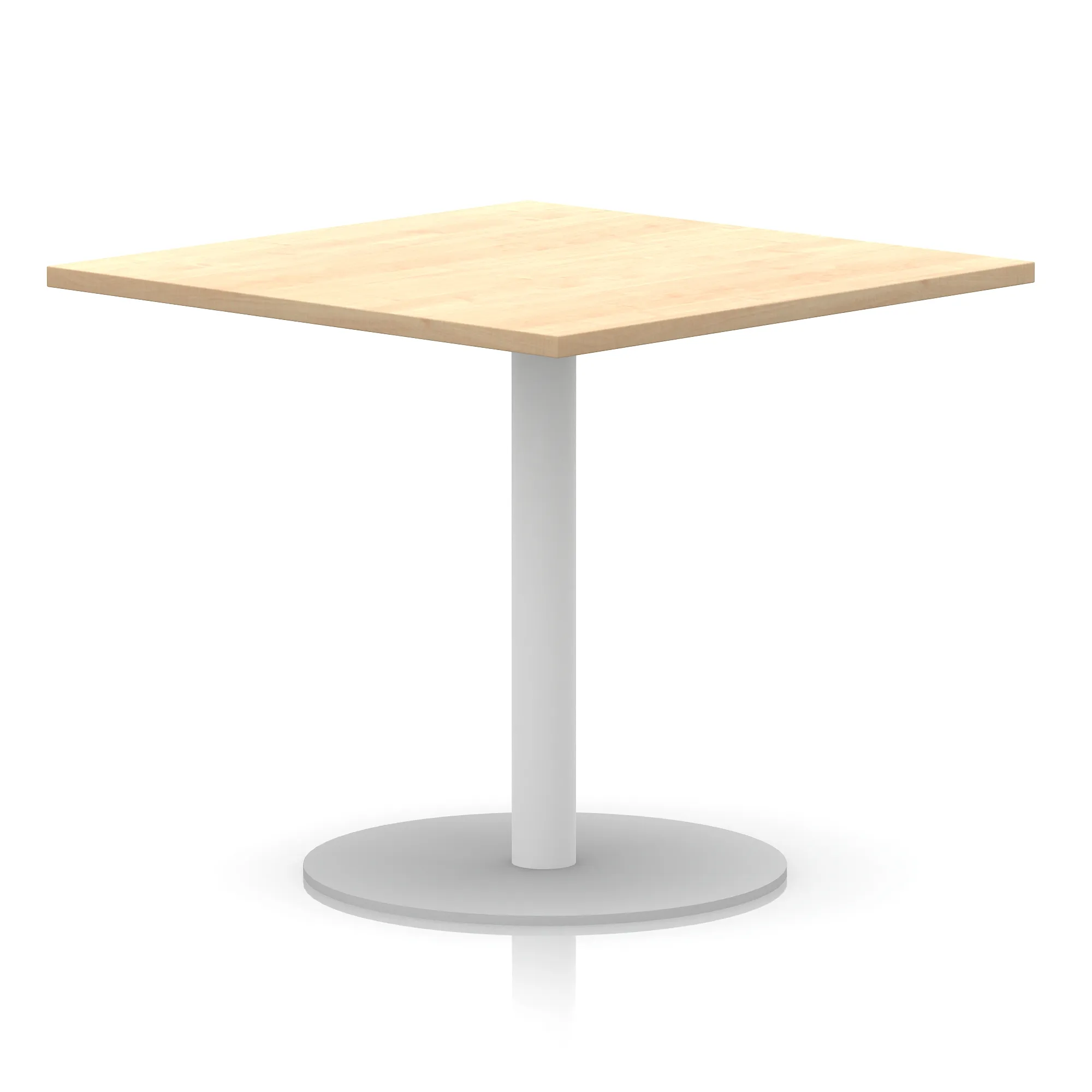 25mm thick desk top profile | Brushed stainless steel effect circular base (580mm diameter) | Brushed stainless steel pillars (76mm diameter) | Weighted base provides stability | Two part bolted frame system