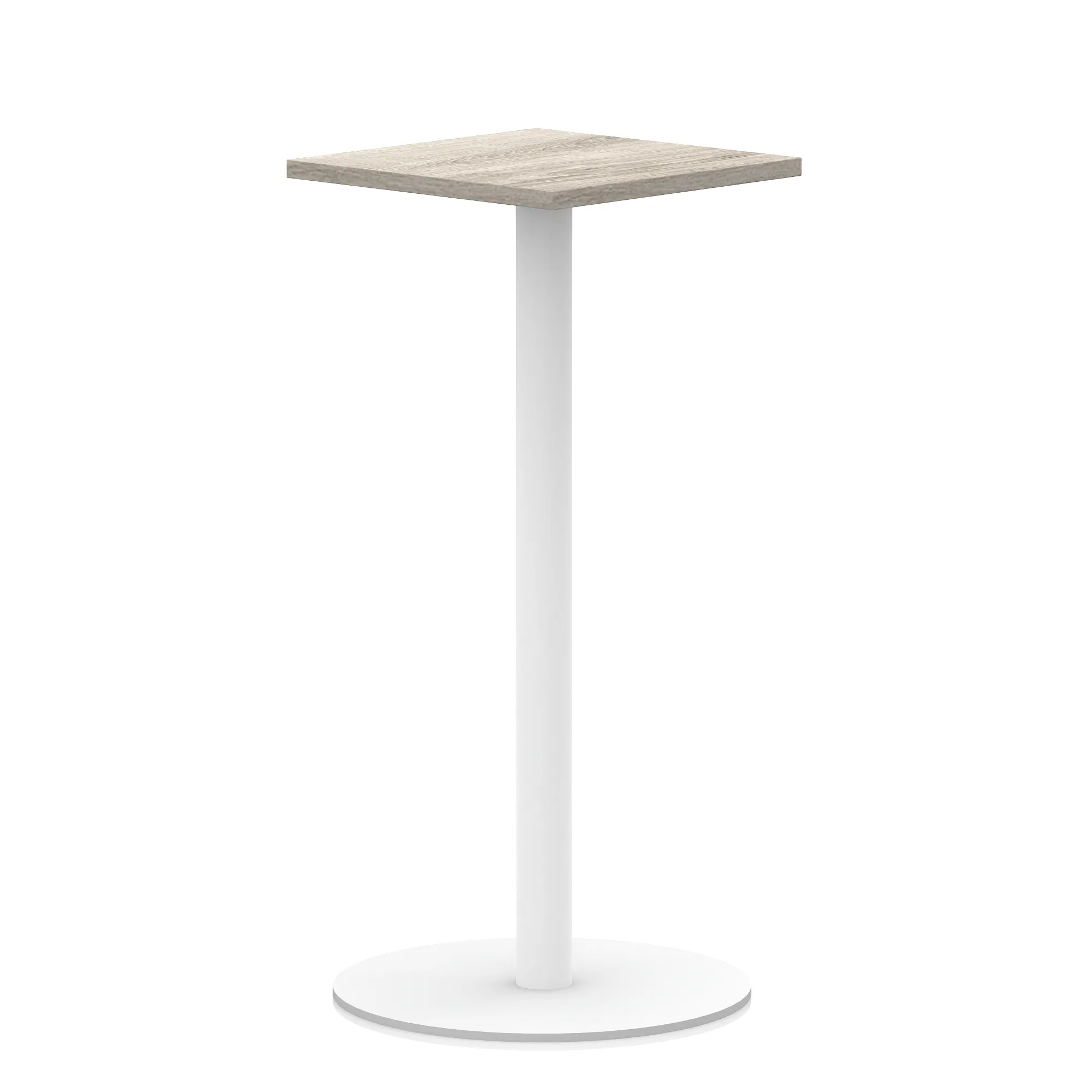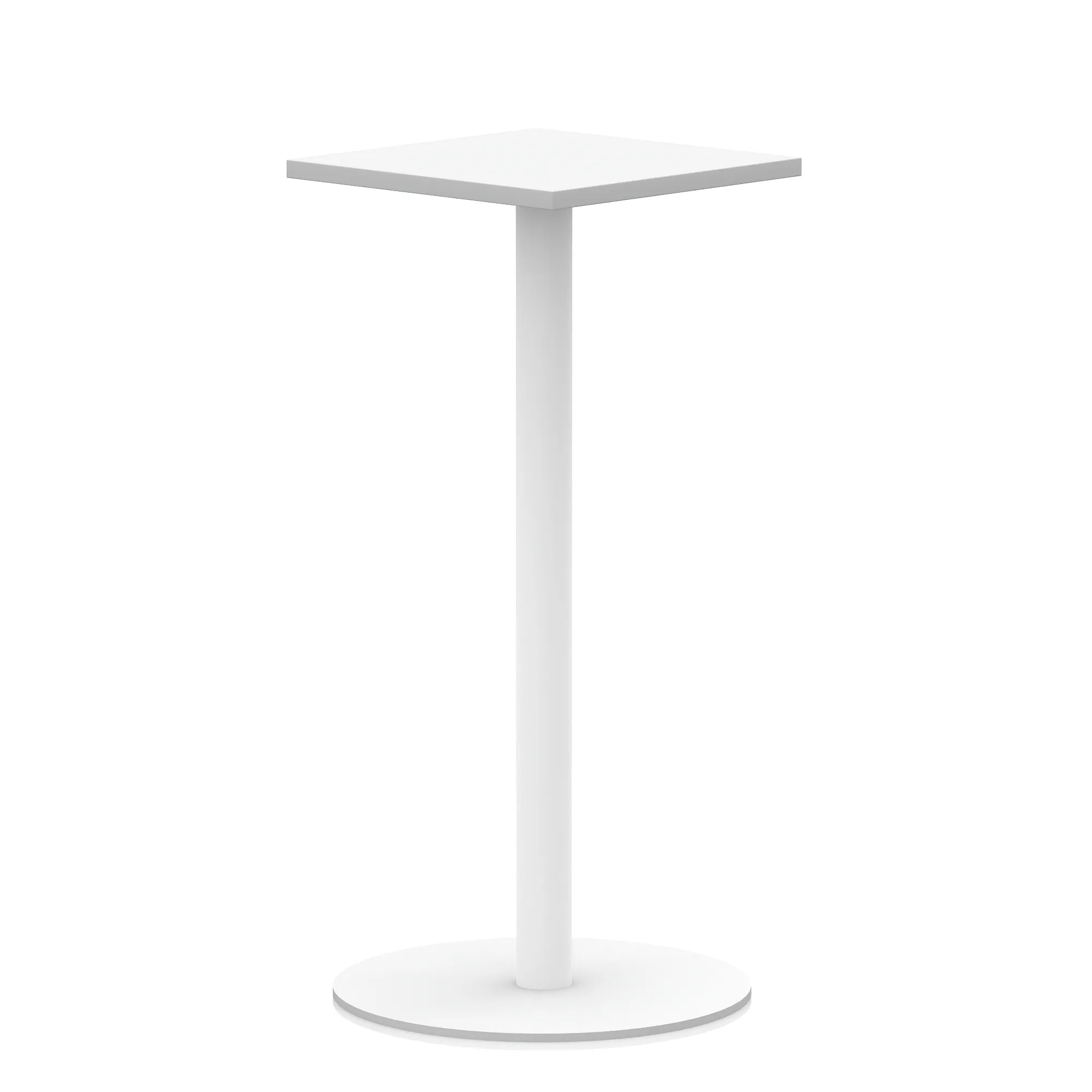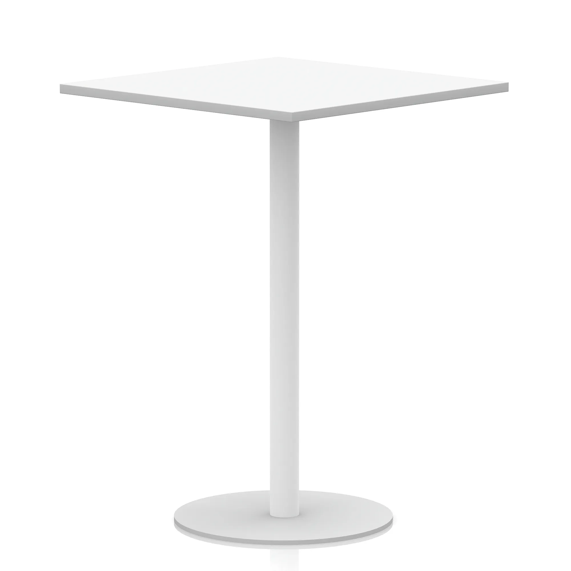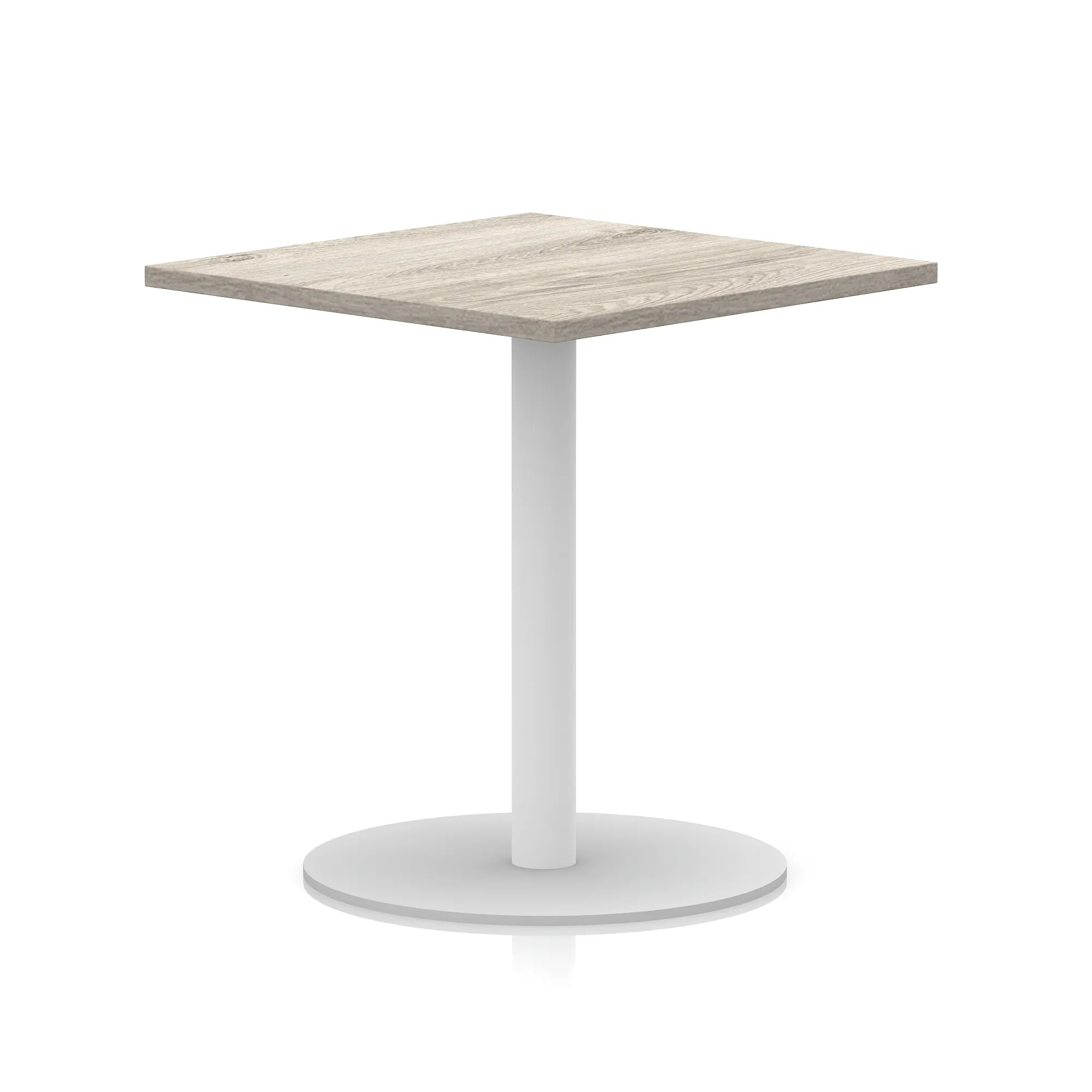 25mm thick desk top profile | Brushed stainless steel effect circular base (580mm diameter) | Brushed stainless steel pillars (76mm diameter) | Weighted base provides stability | Two part bolted frame system
