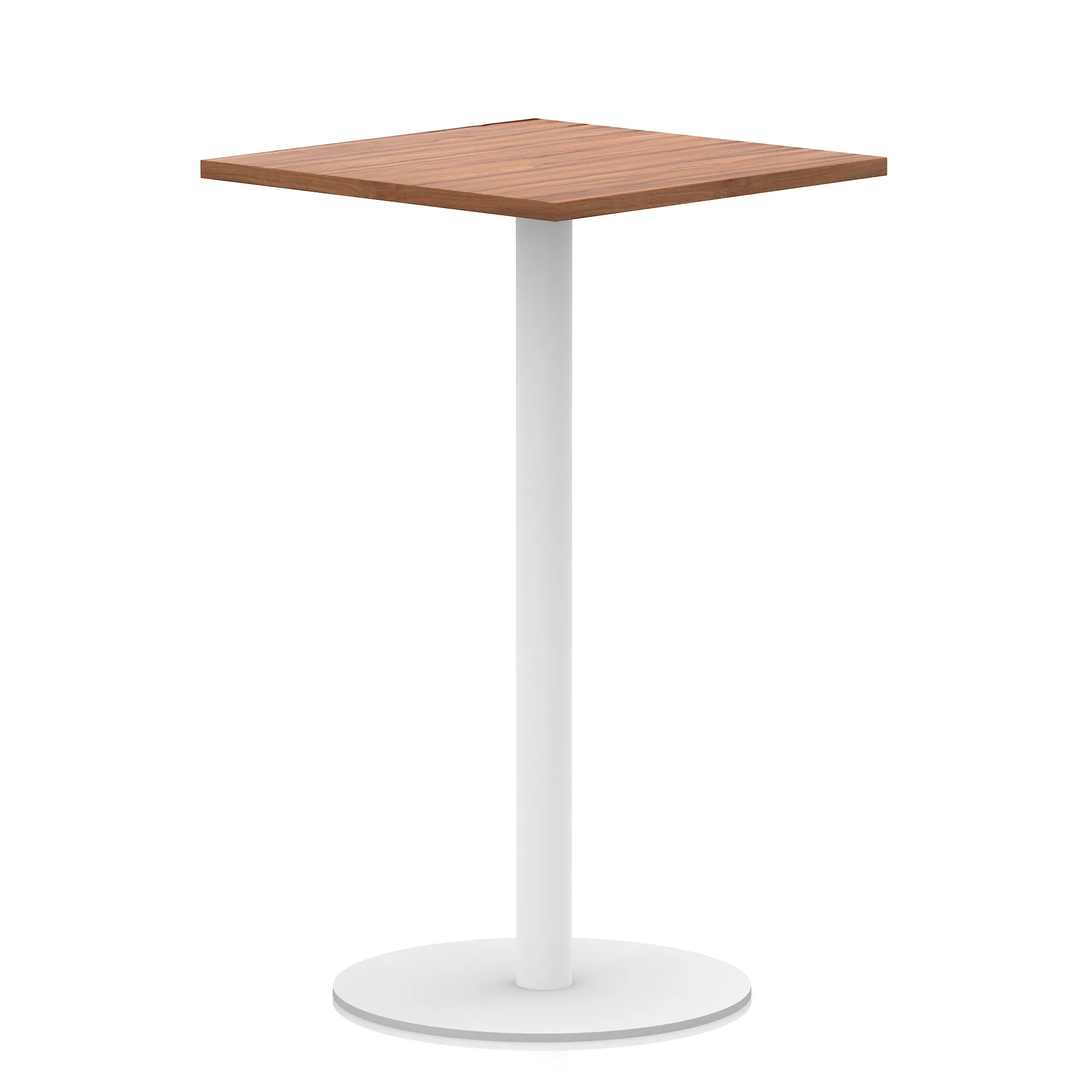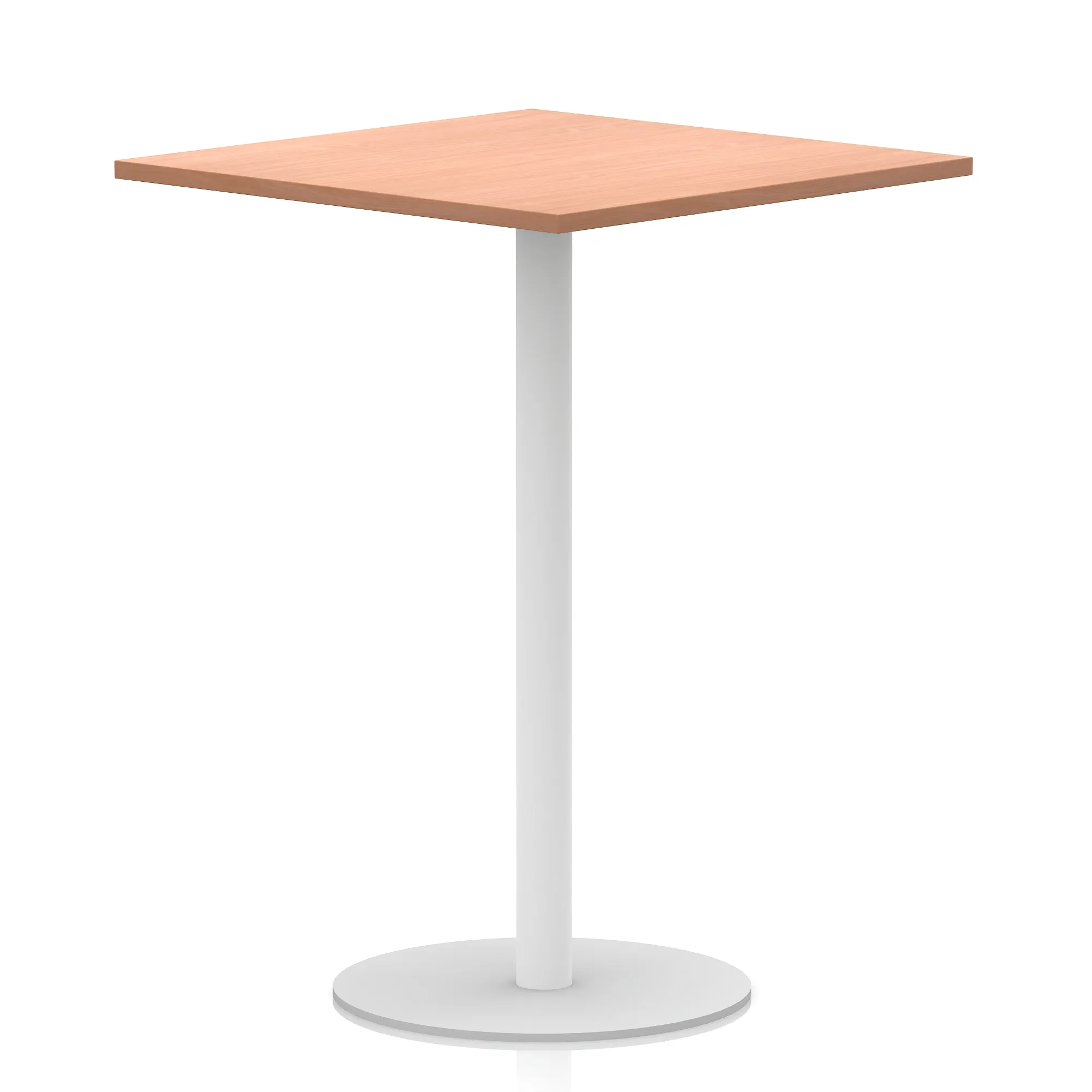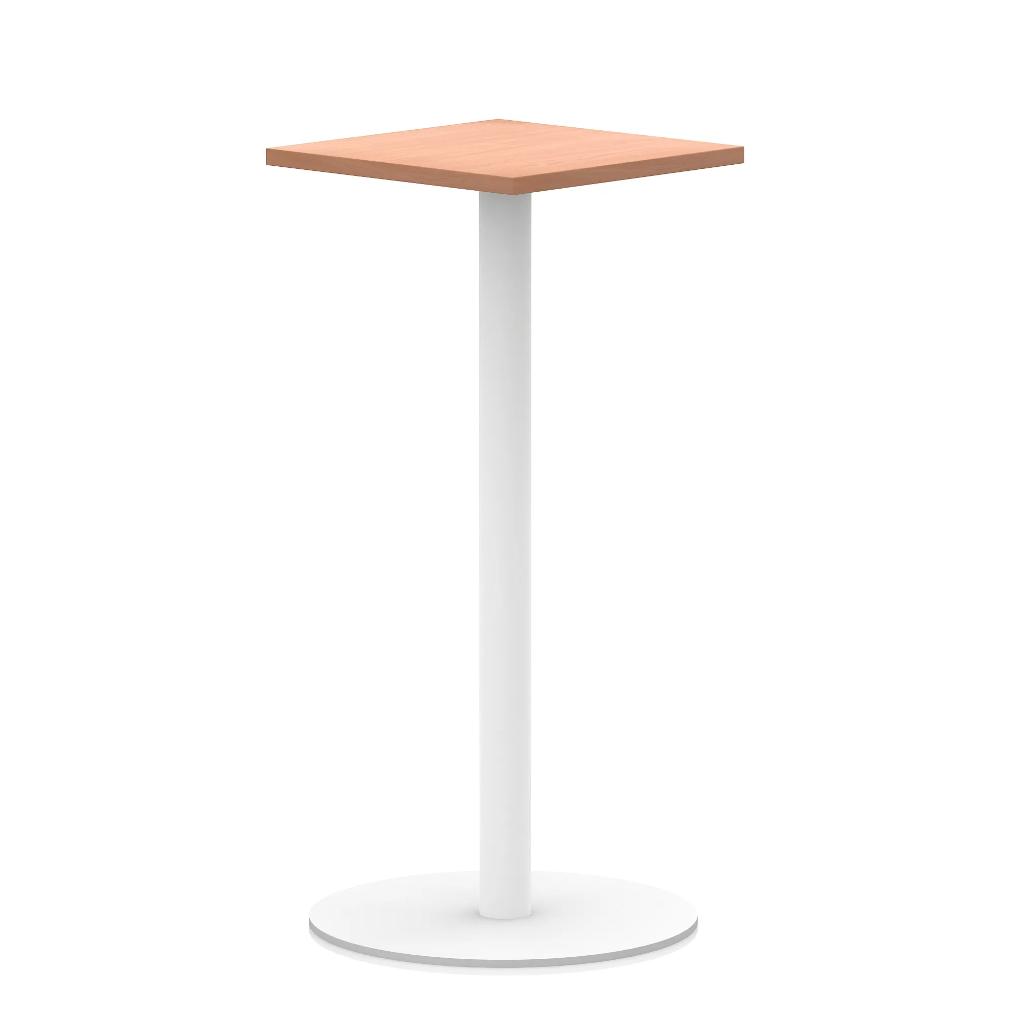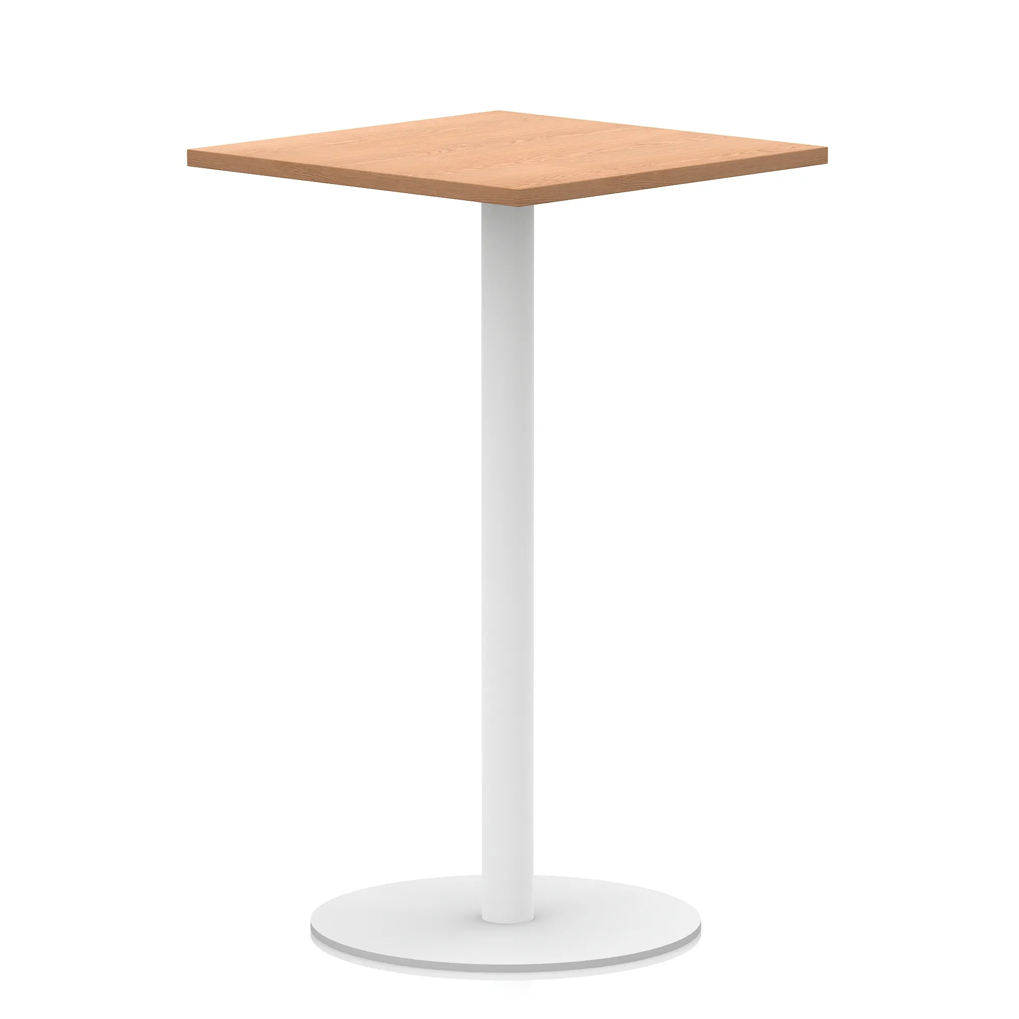 25mm thick desk top profile | Brushed stainless steel effect circular base (580mm diameter) | Brushed stainless steel pillars (76mm diameter) | Weighted base provides stability | Two part bolted frame system