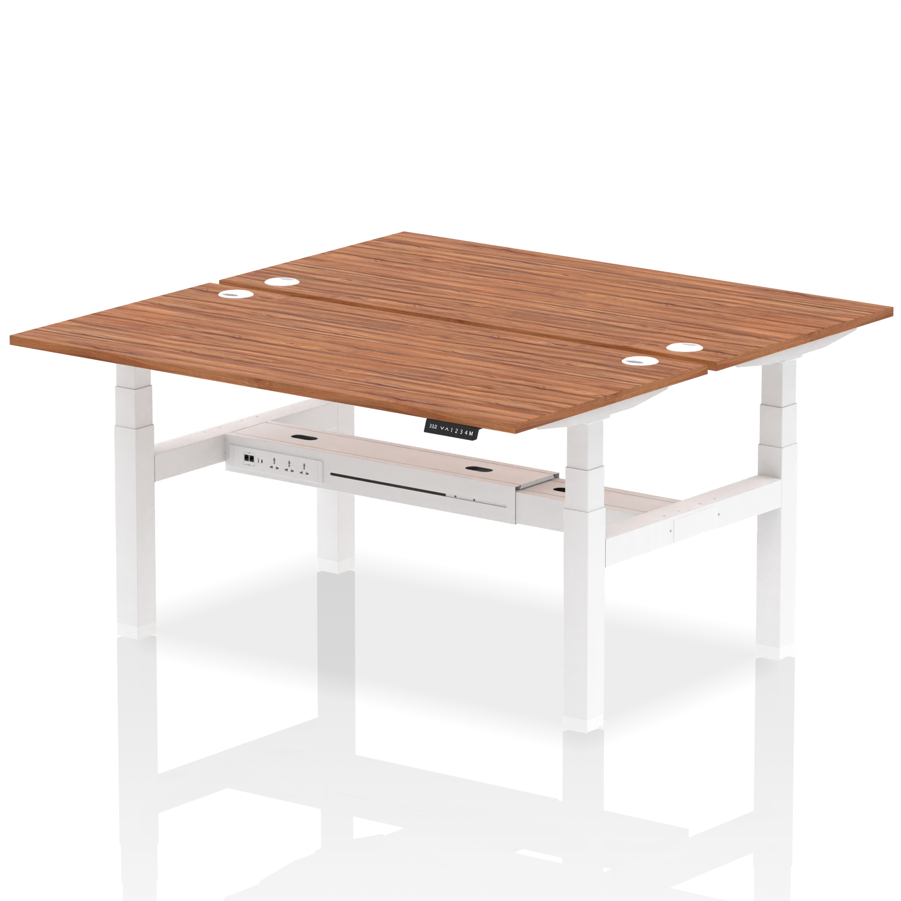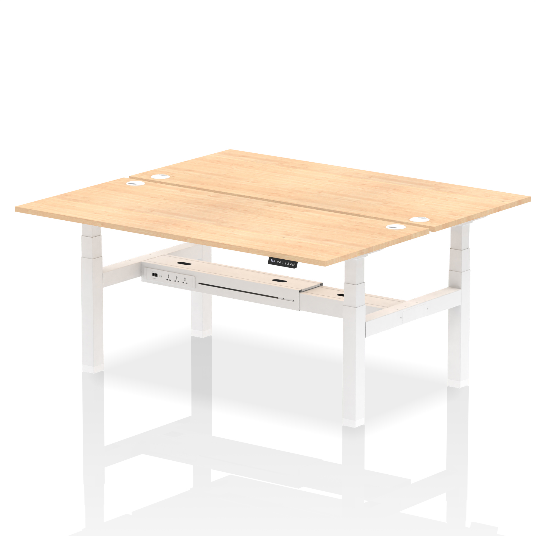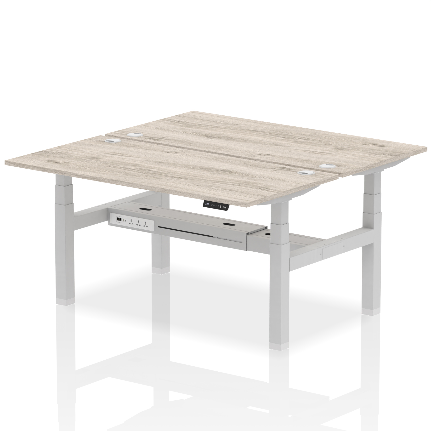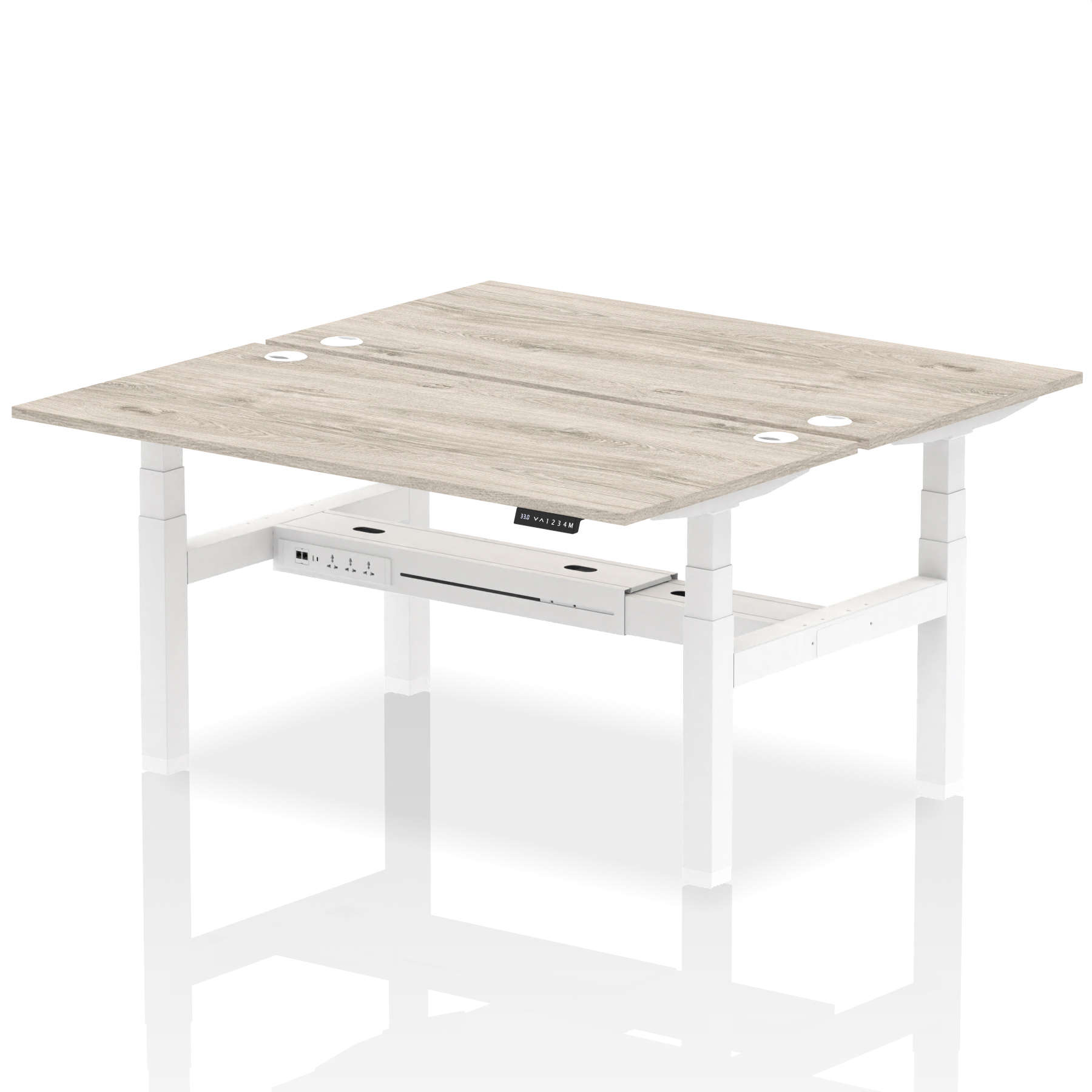 The Air Back-to-Back Height Adjustable Desk, designed for two, is the epitome of efficiency and connectivity. Each desk comes equipped with two Ethernet ports, a USB port, a USB-C port, and three UK plugs, catering to all digital needs. Integrated cable ports ensure a tidy workspace. Adjustable height options offer ergonomic comfort. This desk is the ultimate solution for teams seeking a connected, efficient, and adaptable workspace.